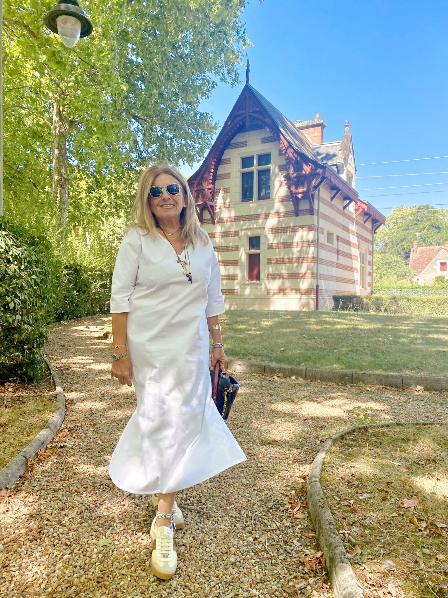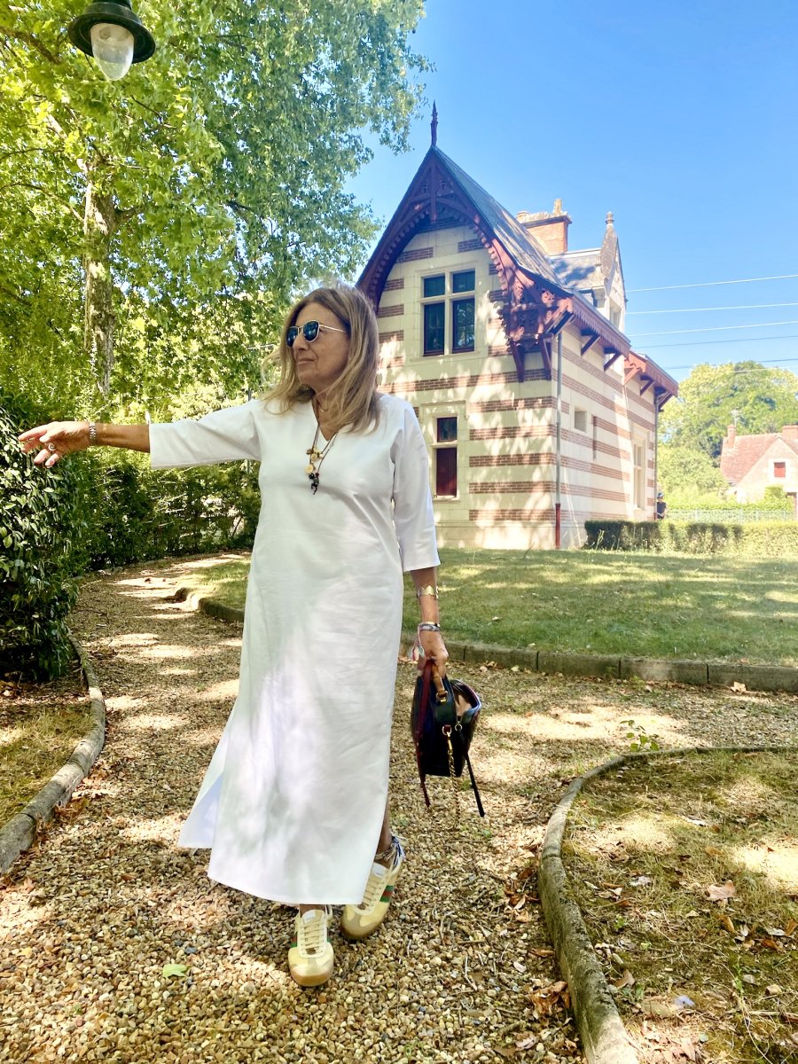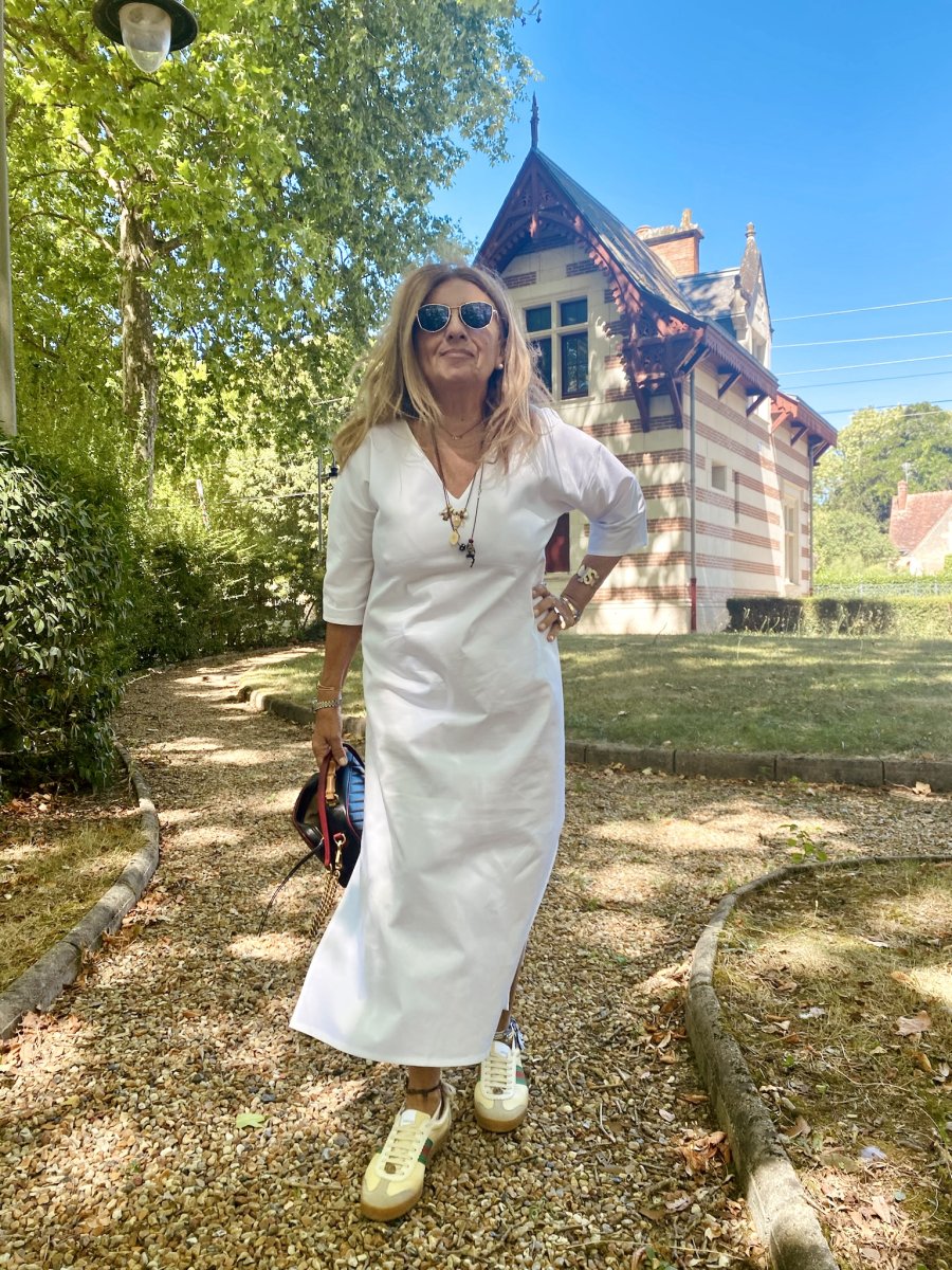 Abito lungo in cotone makò con manica tre quarti e allacciatura a fiocco. È un nostro modello originale e interamente lavorato a mano dal nostro laboratorio . Si può realizzare fino ad un massimo 125 cm di giro seno e giro fianco.