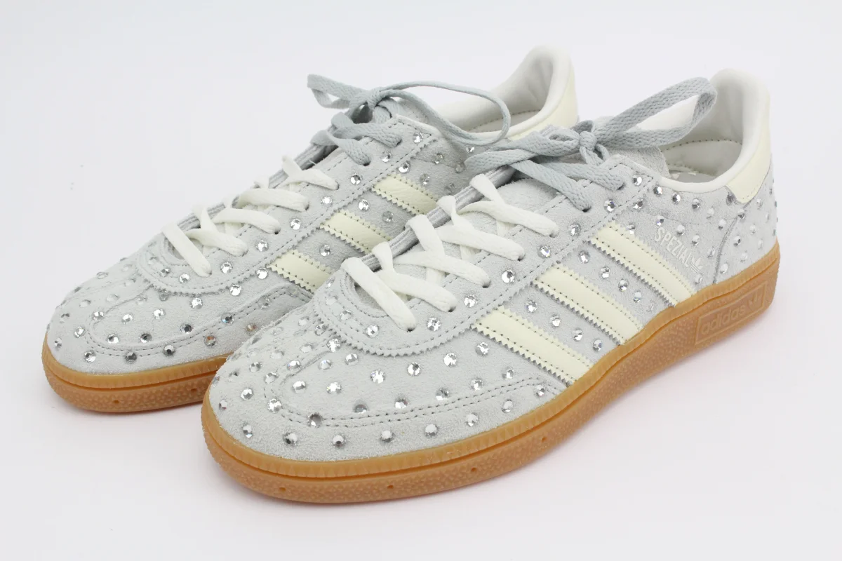 Scarpe Adidas Original SPEZIAL colore di base WONSIL/OWHITE personalizzate con applicazioni sulle pareti di Strass Swarovski Termosaldati Cristal.