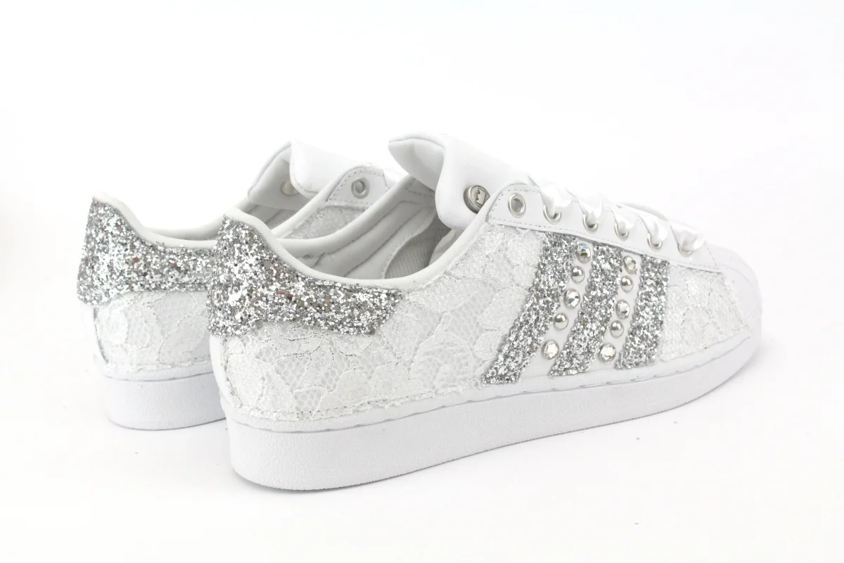 Adidas Superstar Pizzo White Glitter Argento Borchie & Strass