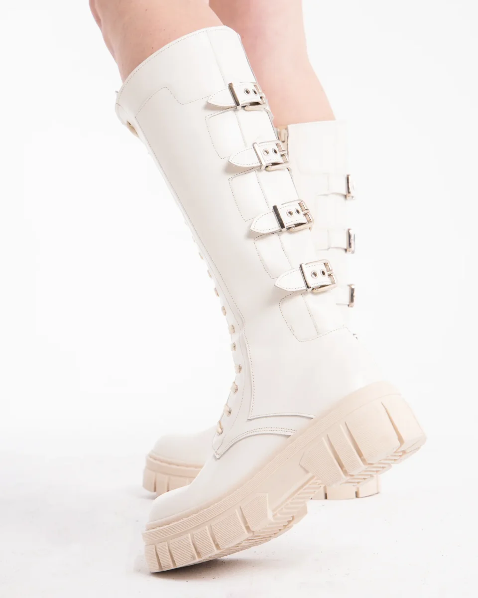 Antea – Anfibio alto con fibbie laterali Off White