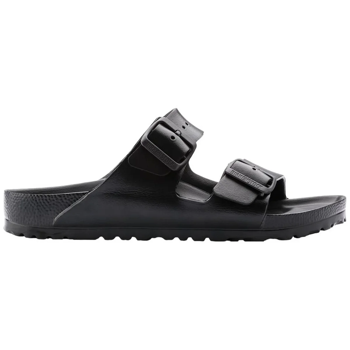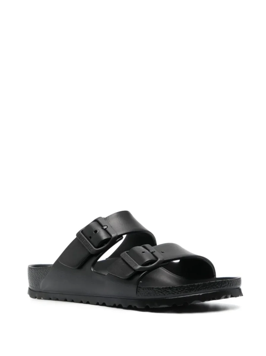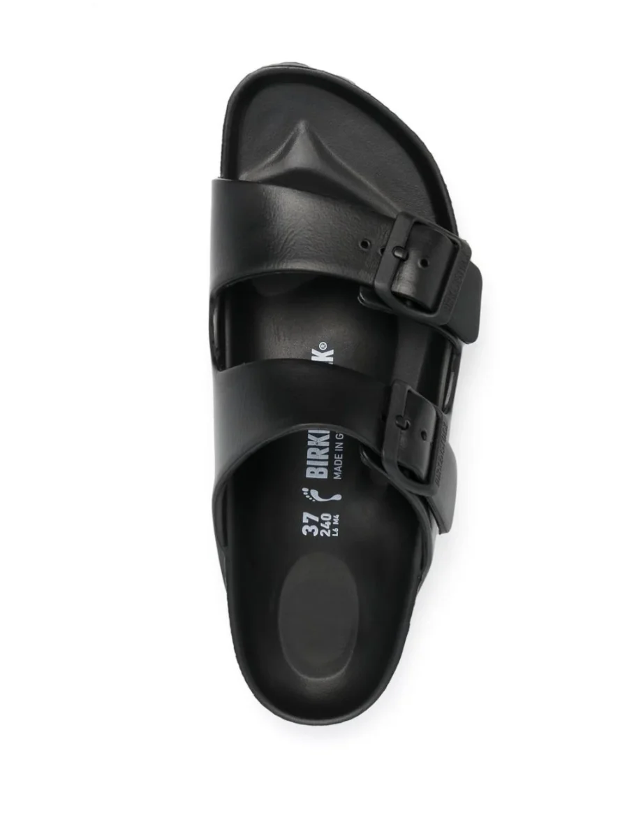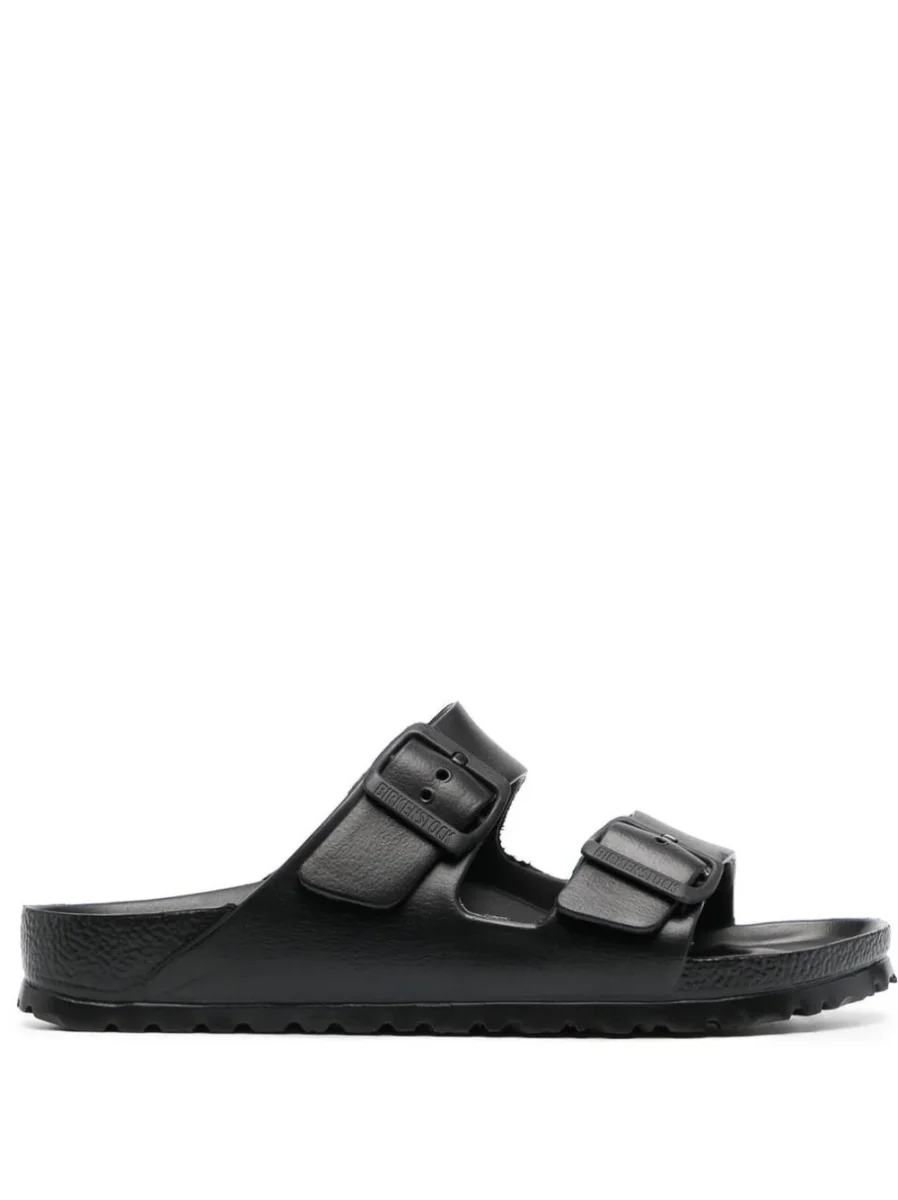 Sandalo BIRKENSTOCK in eva con plantare dalla forma anatomica. Doppi cinturini con fibbie regolabili individualmente tono su tono.