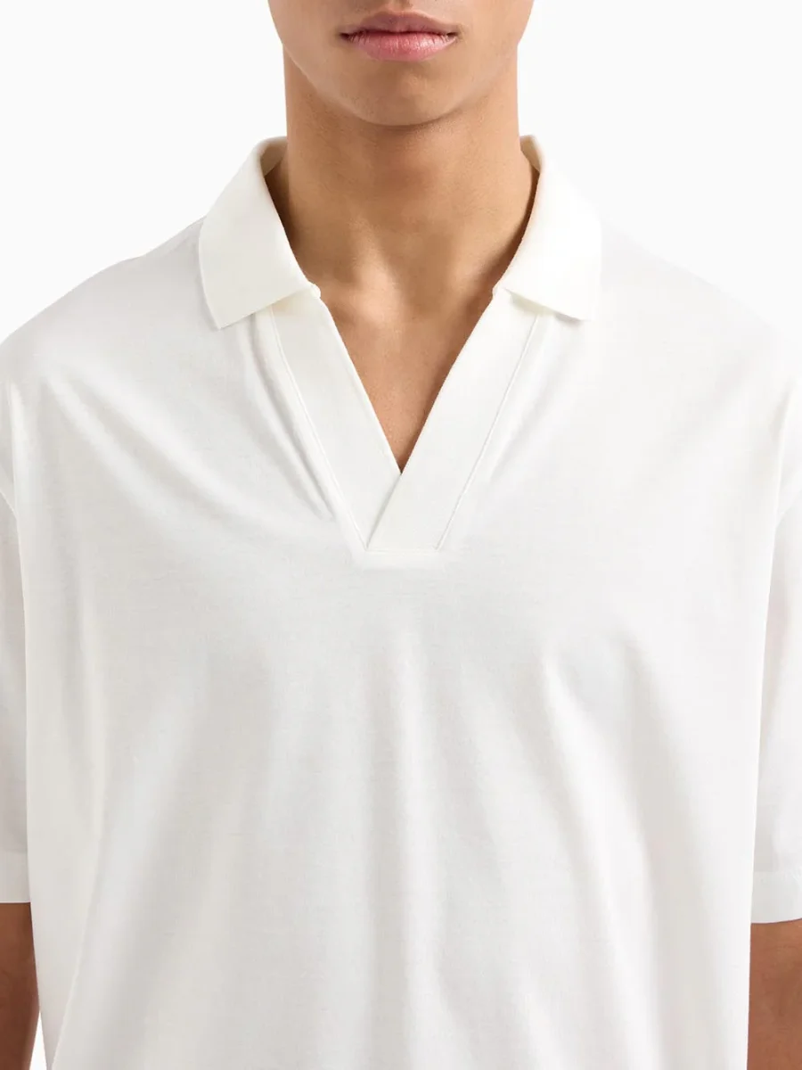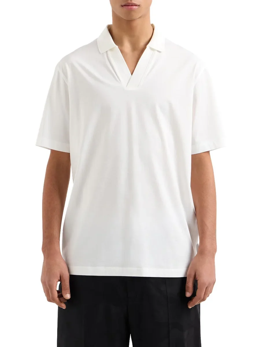 Questa polo si abbina perfettamente a un paio di jeans scuri o pantaloni chino per un look casual-chic. Per le occasioni più formali, può essere completata con un blazer e scarpe eleganti. Gli accessori come orologi e occhiali da sole possono aggiungere un tocco finale al tuo outfit, rendendolo unico e alla moda.