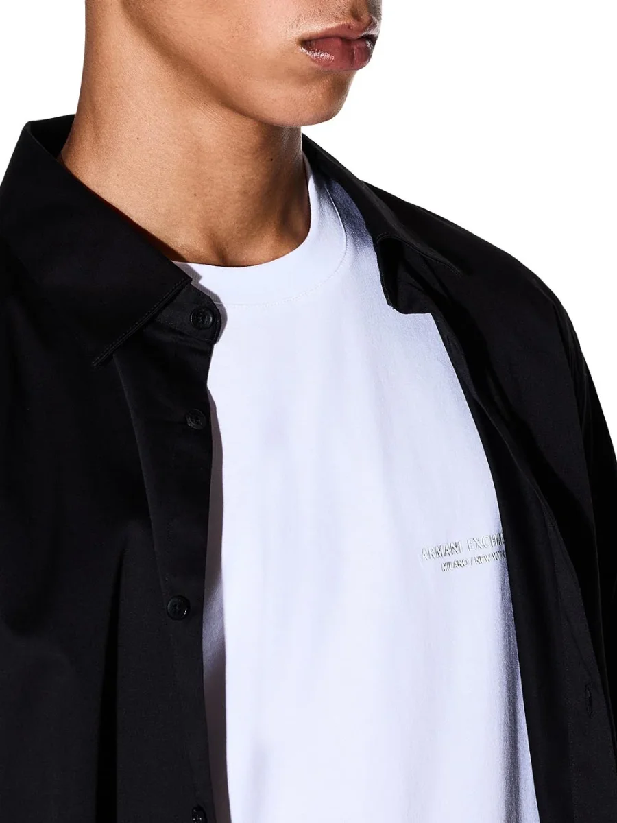 Dettaglio logo Armani Exchange Milano / New York lettering tono su tono sul petto