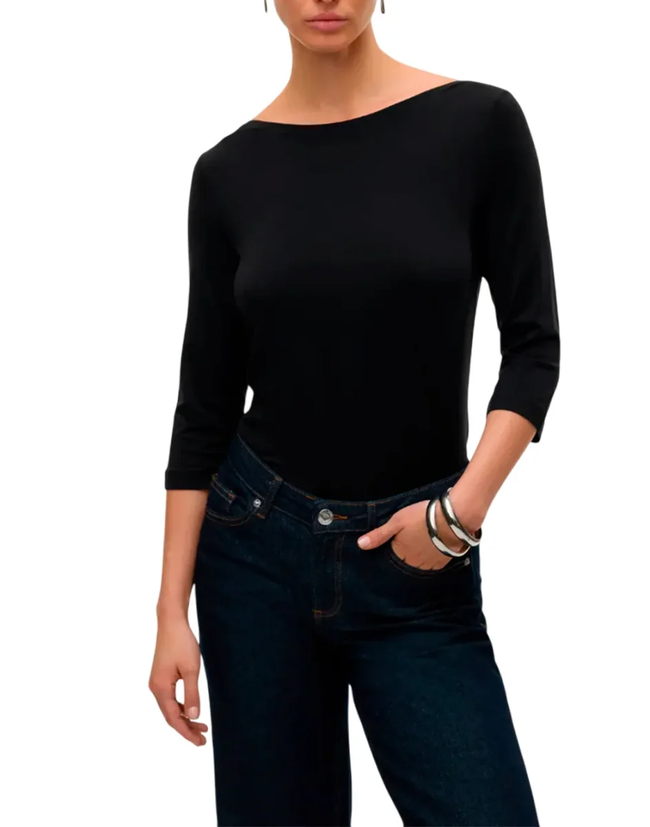 Top con scollo a barca e maniche 3/4, dalla vestibilità regular fit che offre comfort e un look sofisticato. Ideale per un outfit versatile e raffinato.
