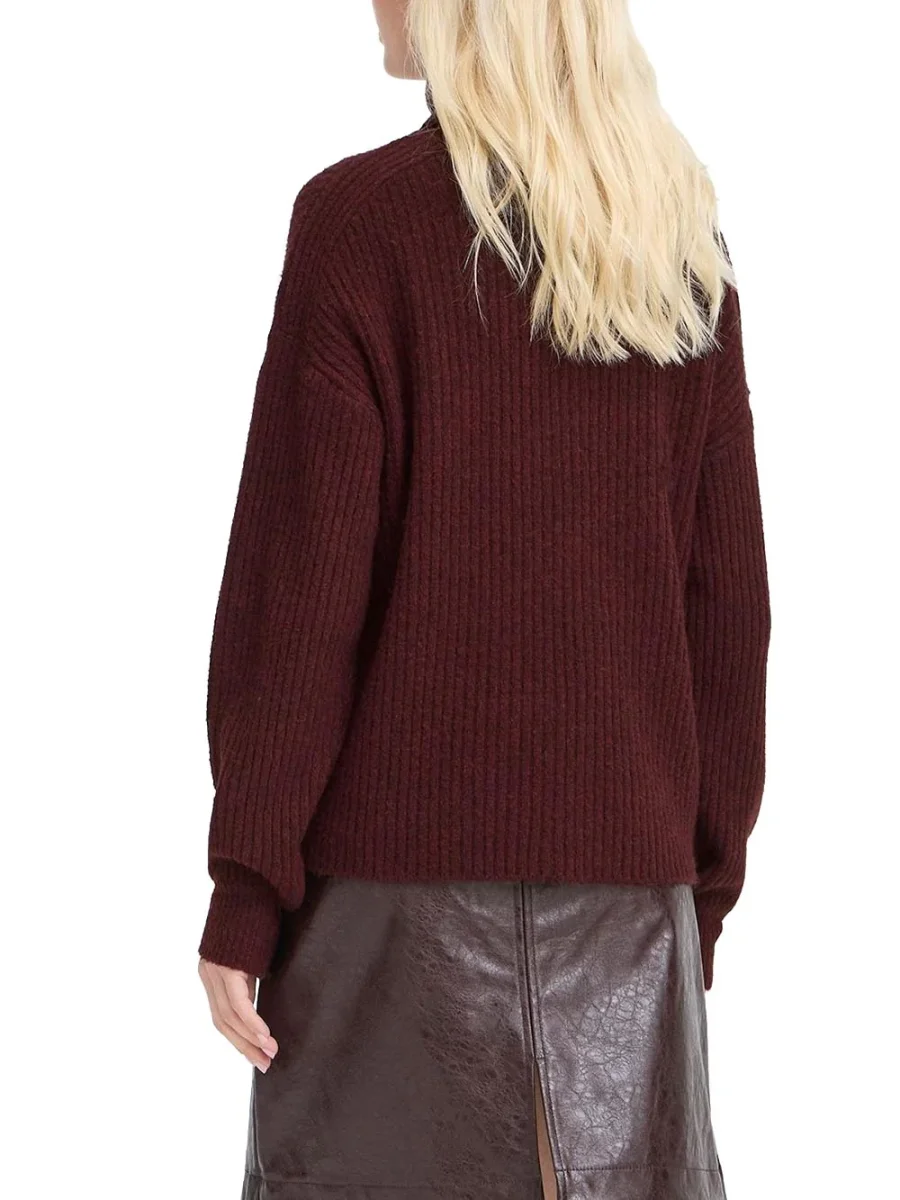 Per un outfit impeccabile, abbina la maglia 20818240 a un paio di jeans skinny o pantaloni a sigaretta e completa il look con stivali alla caviglia. Puoi anche aggiungere una giacca in pelle per un tocco di grinta o un cardigan avvolgente per un tocco più classico. Gli accessori in oro o argento valorizzeranno ulteriormente il colore vinaccio, rendendo il tuo stile unico e inconfondibile.