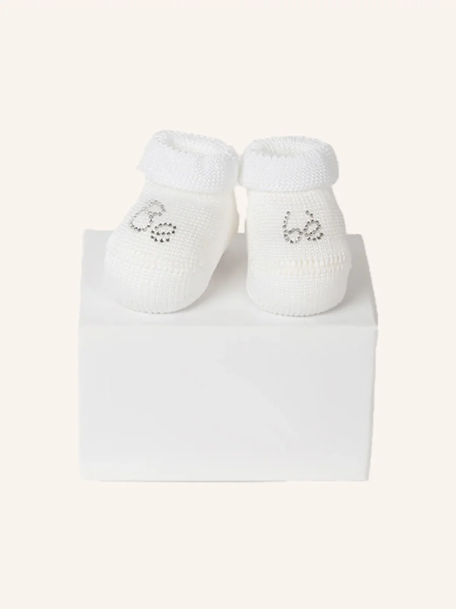 Babbuccia in Cotone con Scritta Bebè in Strass per Neonato | Tinta Unita | Confezione da 1 Paio | 41930