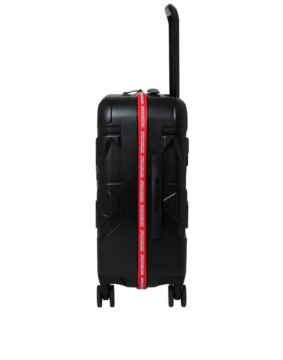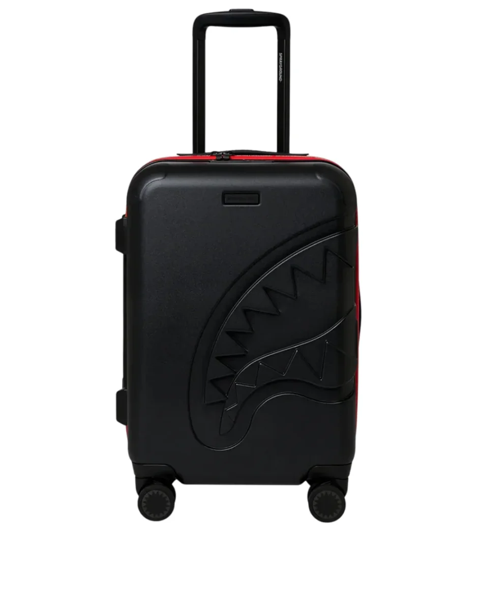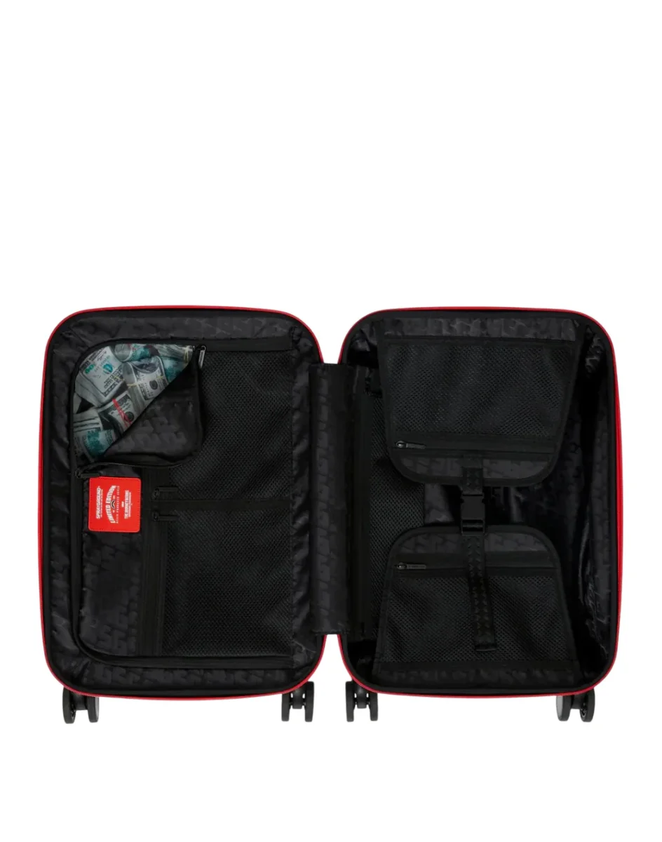 Bagaglio a mano con iconica stampa Sprayground e guscio in policarbonato ultra resistente. Telaio in alluminio senza cerniera, serrature TSA, 4 ruote piroettanti e manico telescopico. Interno con fodera in raso stampata, tasche organizer, cinghie di fissaggio e finiture in metallo. Dimensioni approvate TSA.