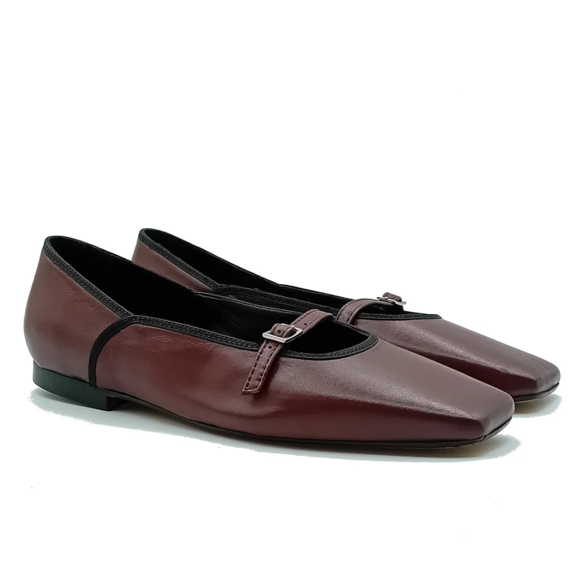 Ballerina in pelle con punta quadratina.