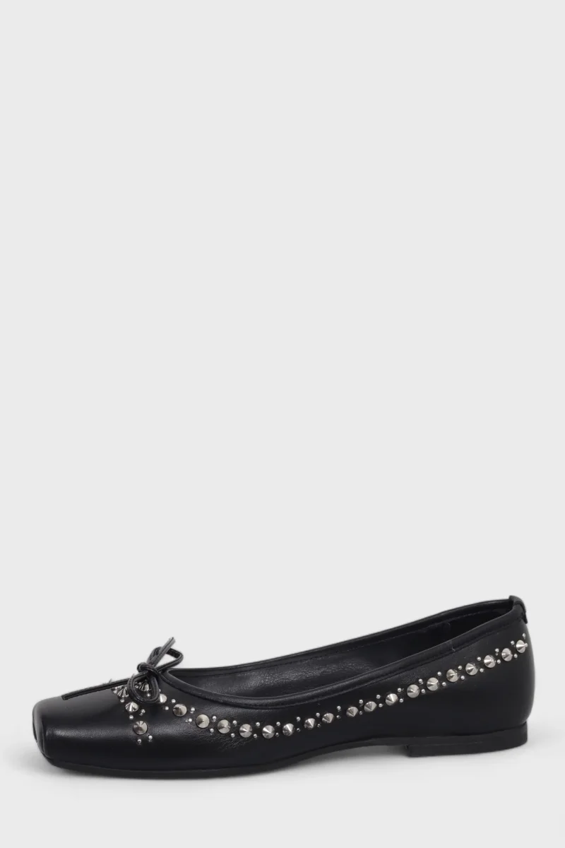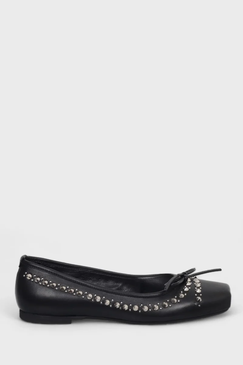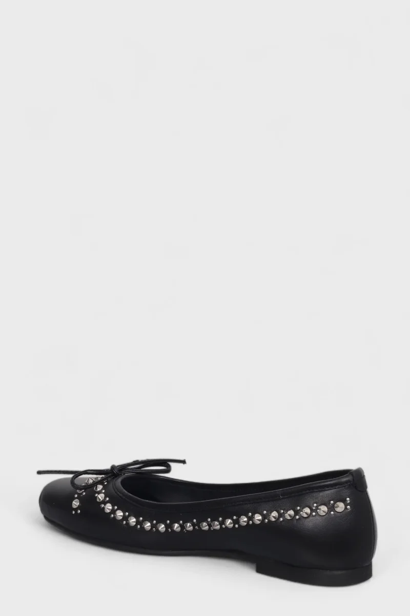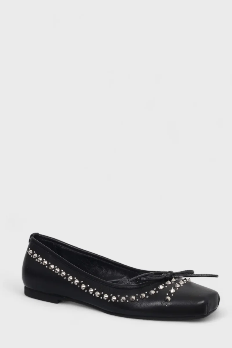 Ballerina in pelle nero con borchie nel colore argento, interni in similpelle, suola in tunit nera, altezza 2.5, calzano regolari, realizzate in modo artigianale, rigorosamente made in Italy.