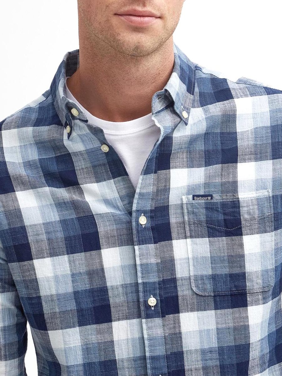 Barbour Camicia Uomo Msh5450 Hillroad Tailored Shirt Blu