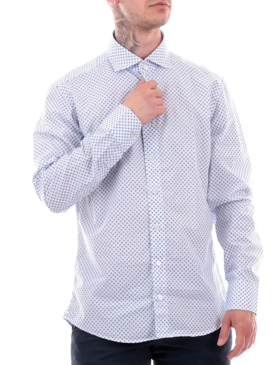 Bastoncino Camicia Uomo B2608 Simo Bianco celeste