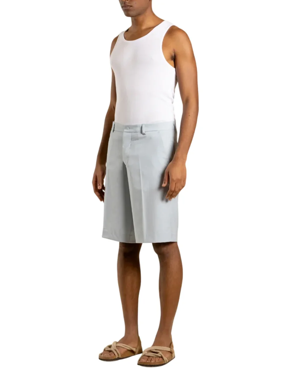Bermuda in cotone a taglio regular con tasche America laterali. Linea pulita e comoda, ideale per un look casual quotidiano.