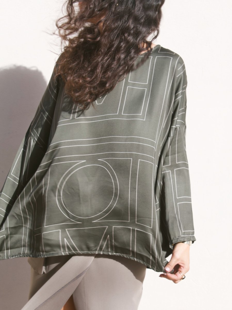 Blusa oversize in rayon e viscosa . È taglia unica e veste fino ad una 50/52.