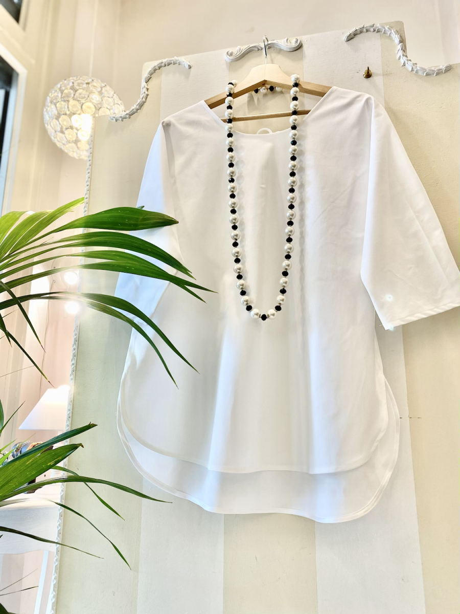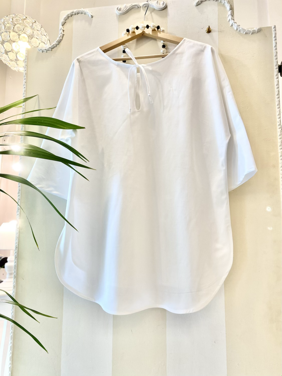 Blusa in cotone con manica tre quarti e allacciatura a fiocco. È un nostro modello originale e interamente lavorato a mano dal nostro laboratorio . Perfetta da abbinare ai nostri pantaloni Saint Tropez in cotone . Il prezzo si riferisce alla variante base senza bordino in contrasto nella manica. La blusa con bordino nel polso […]