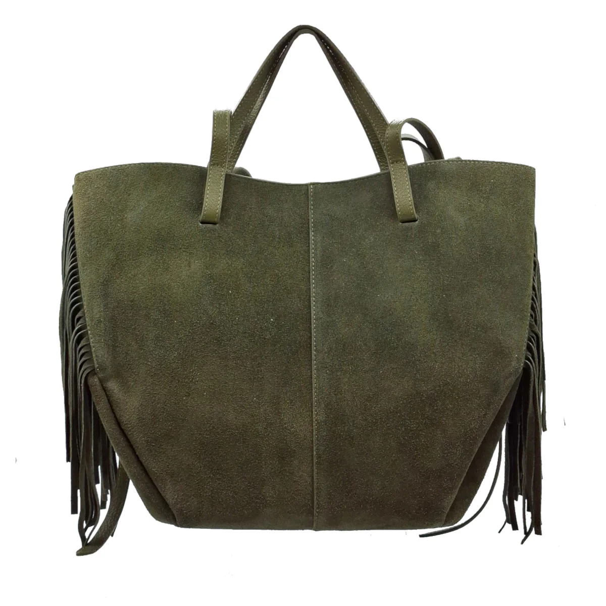 Borsa in camoscio con frange laterali.Comoda e capiente.