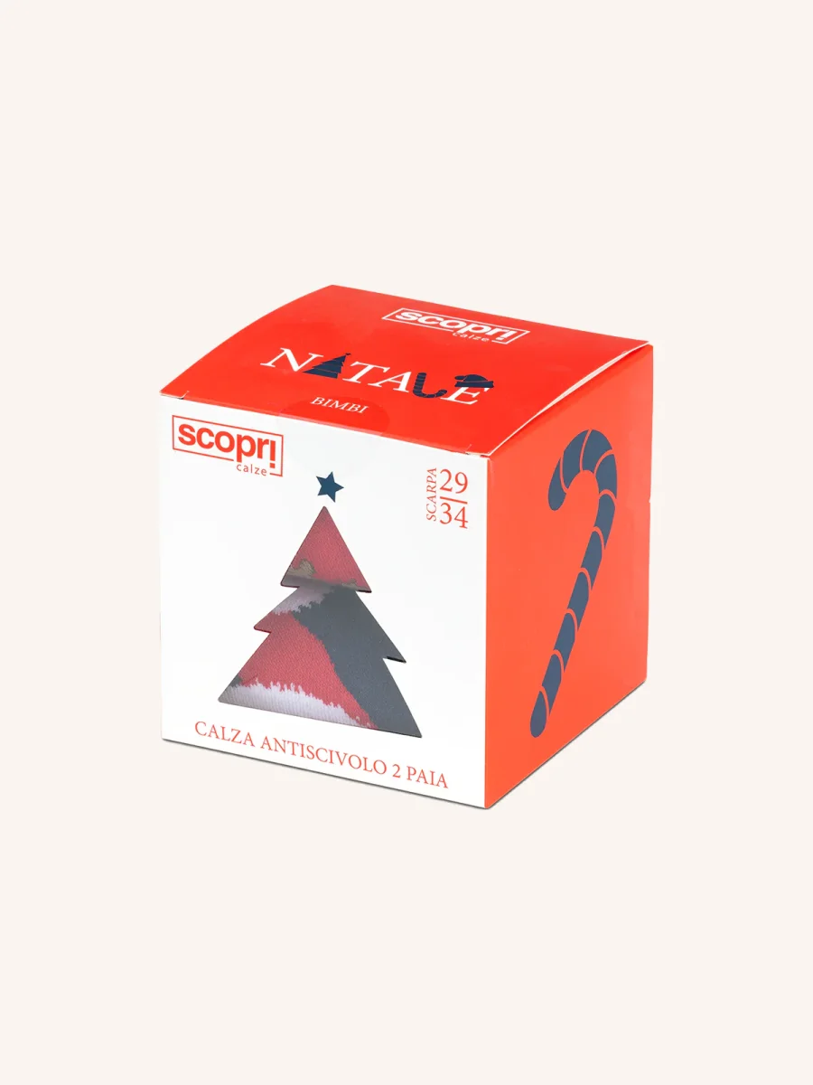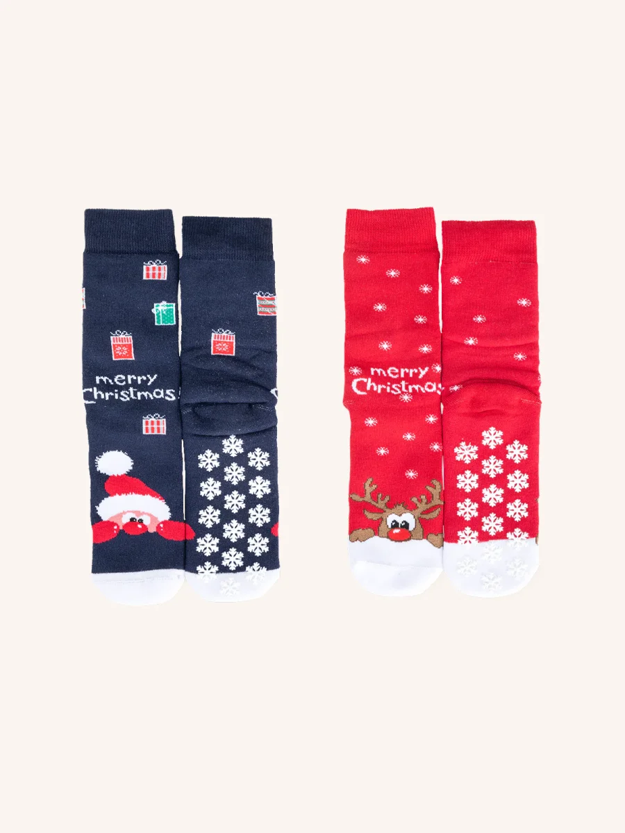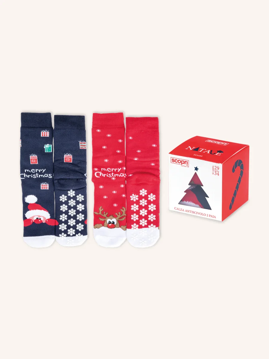 Calza Antiscivolo in Cotone per Bambino | Fantasia Natalizia | Confezione da 2 Paia | XMAS BA