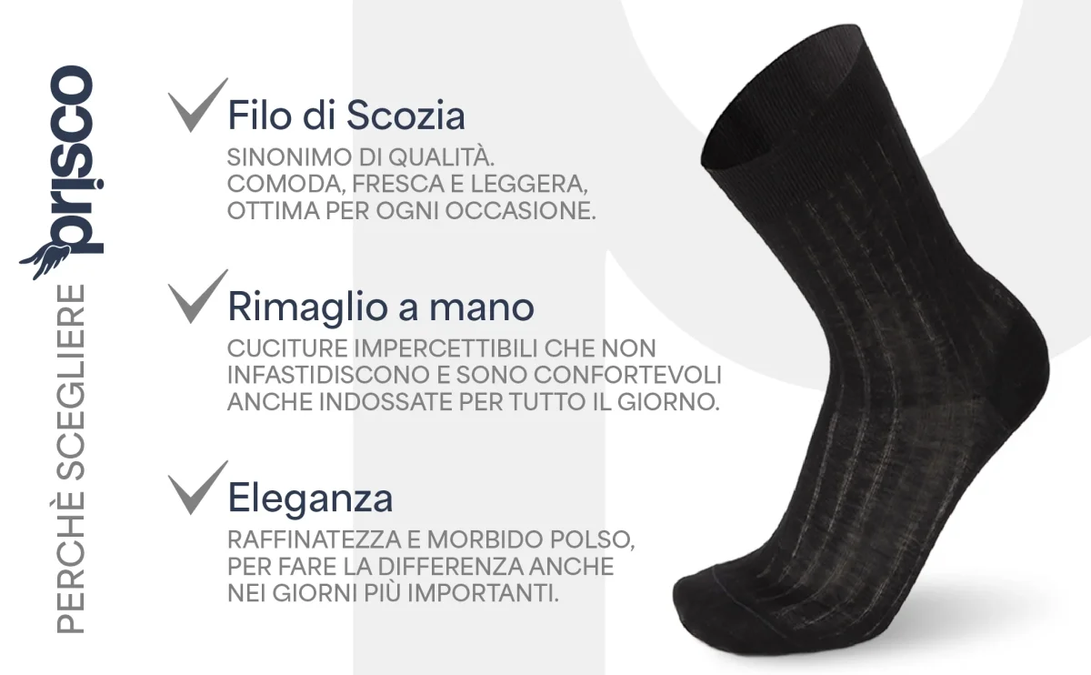 - GARANZIA PRISCO: calze corte coste cotone filo scozia Prisco, affidabilità di un brand storico nel settore della calzetteria, serietà e professionalità dal 1969
