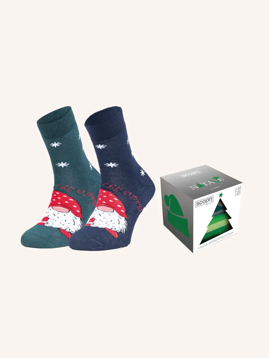 Calza Antiscivolo in Cotone per Bambino | Fantasia Natalizia | Confezione da 2 Paia | XMAS BA
