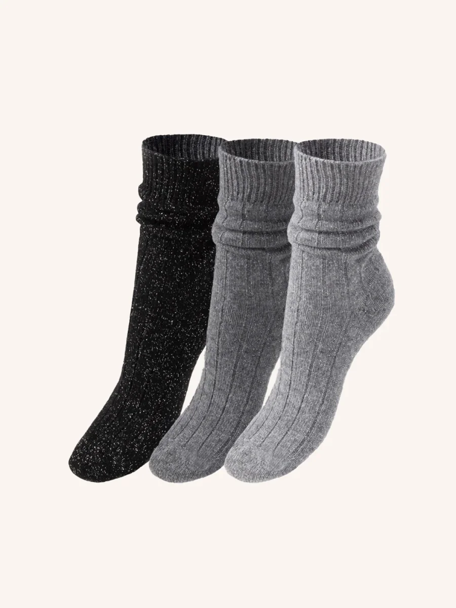 Calza Corta in Lana Cashmere e Lurex per Donna | Tinta Unita | Confezione da 3 Paia | Cashlux D