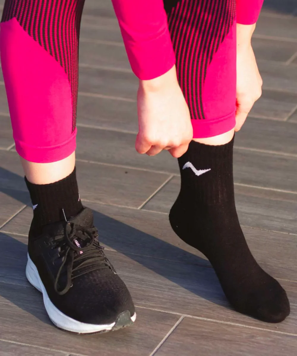 Sono la Calza Tennis CREW Classica ma non scontata! La mia punta rimagliata ‘anti-sfregamento’ e la mia morbidezza mi rendono la calza ideale per tutti i giorni.
