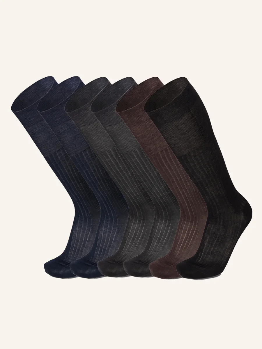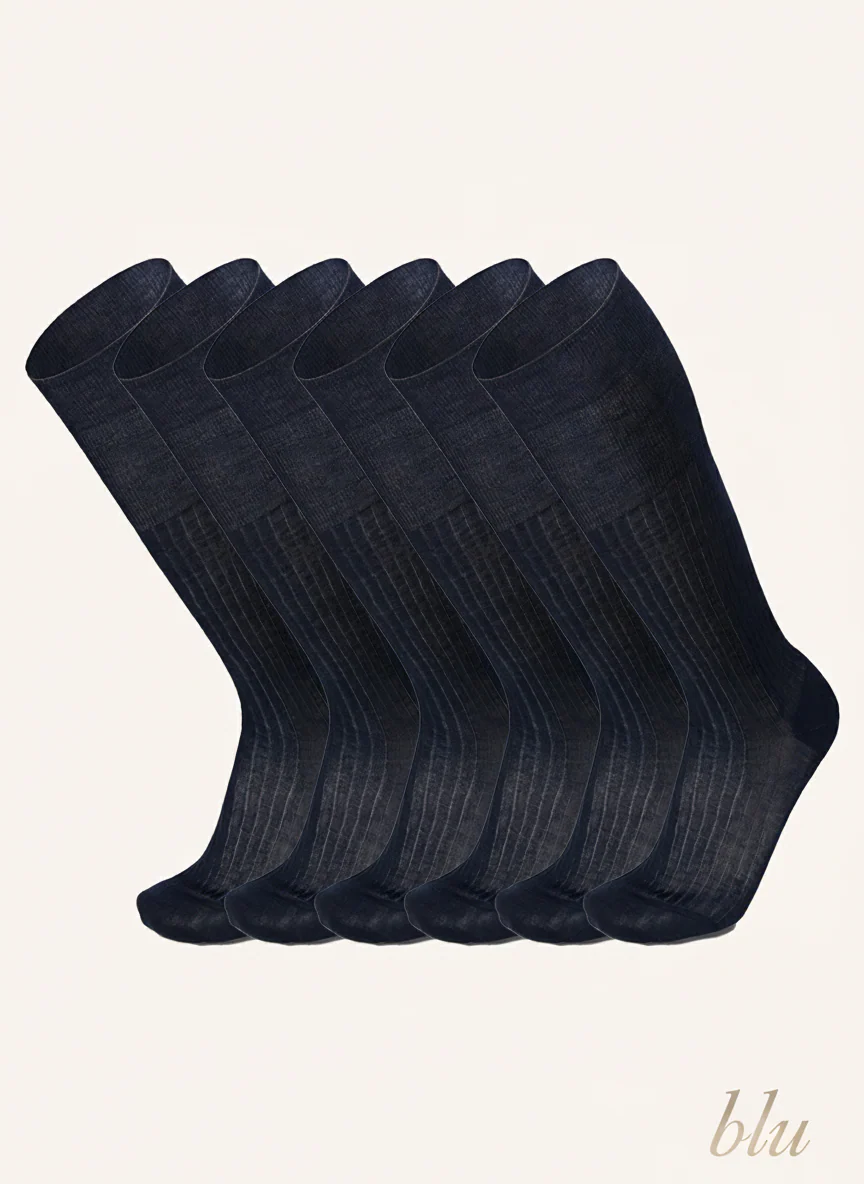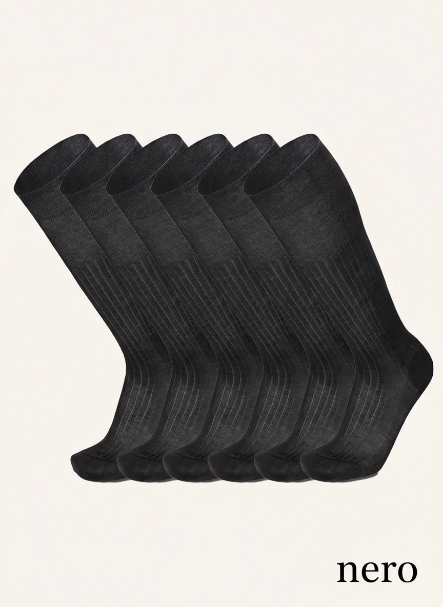 Calza Lunga a costa Doppia Resistenza in Filo di Scozia per Uomo | Tinta Unita | Confezione da 6 Paia | Principe Costa Lungo 7L