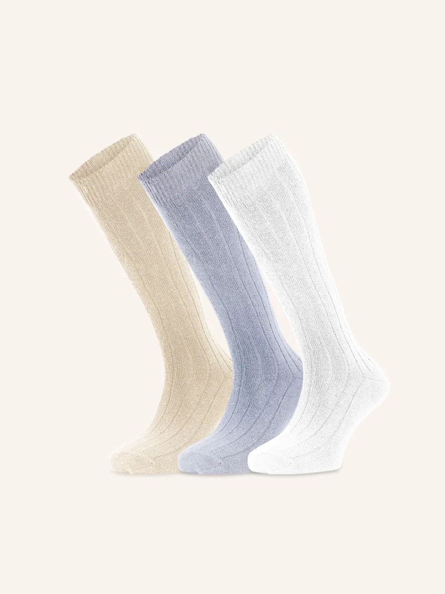 Calza Lunga a Costa in Angora Cotone e Viscosa per Uomo | Tinta Unita | Confezione da 3 Paia | Blond L