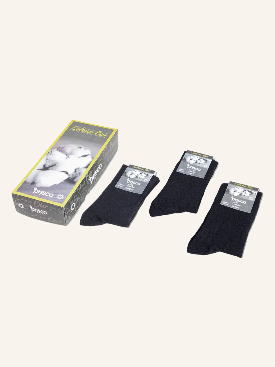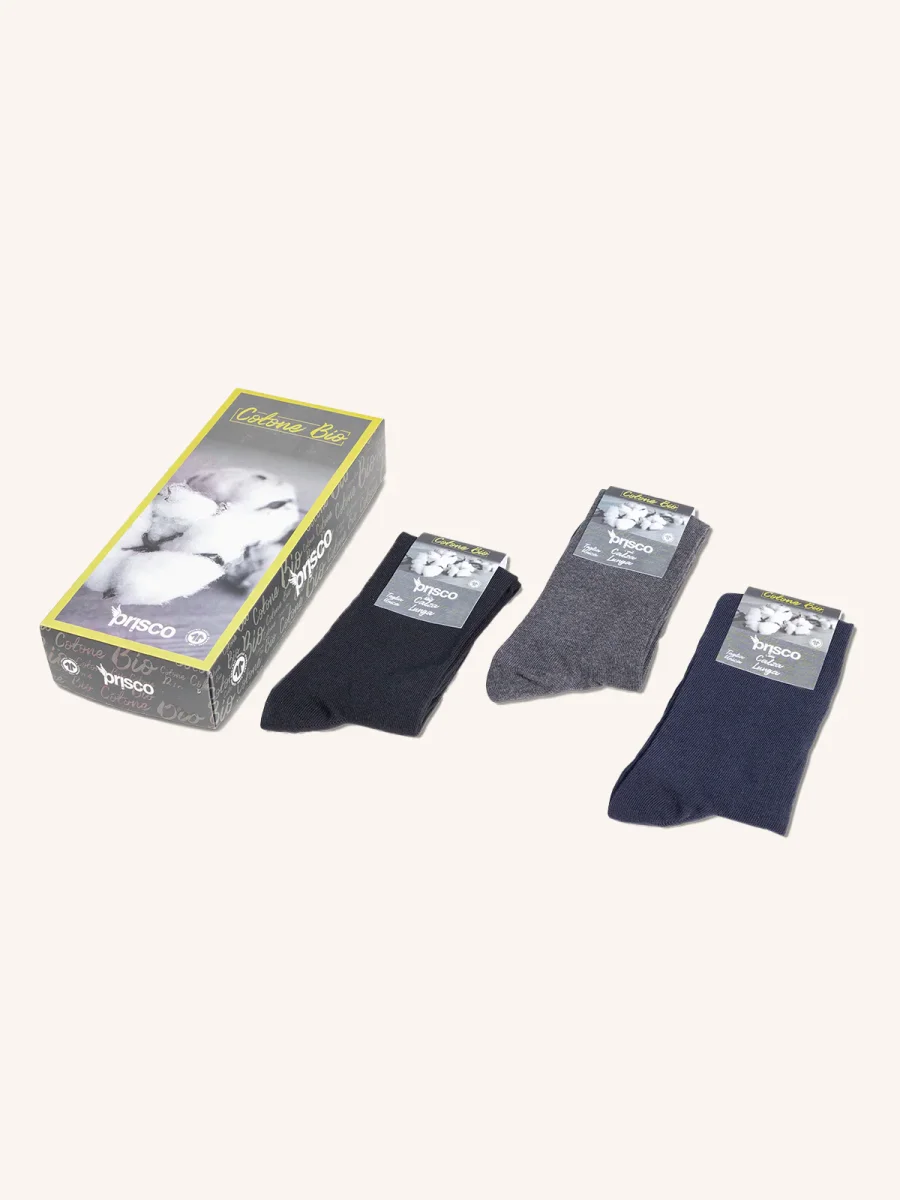 Calza da uomo lunga tinta unita in maglia rasata. Questa calza è stata realizzata con l’impeigo di cotone organico certificato gots . Prodotto rimagliato punto per punto con close toe technology