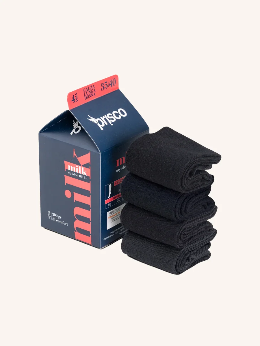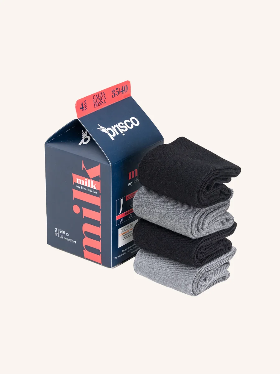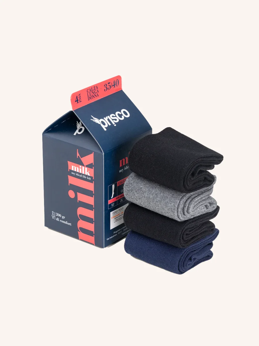 Calza Lunga in Cotone per Donna | Tinta Unita | Confezione da 4 paia | Milk DL