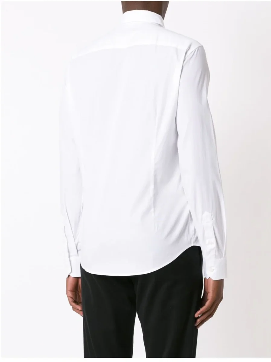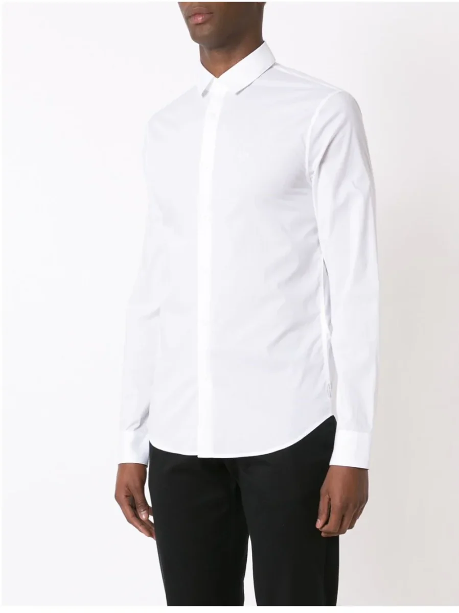 Indossa questa camicia slim fit e abbraccia l’eleganza senza tempo. Realizzata in cotone stretch satinato, offre comfort e vestibilità impeccabile. Caratterizzata da un collo classico e da un cannoncino coperto, questa camicia si distingue per i polsini con bottoni e per il discreto logo ricamato sul petto, aggiungendo un tocco di raffinatezza ad ogni tuo outfit.