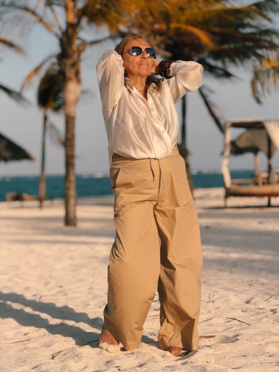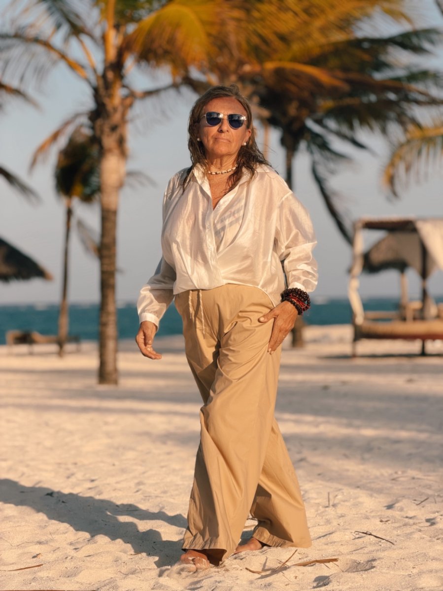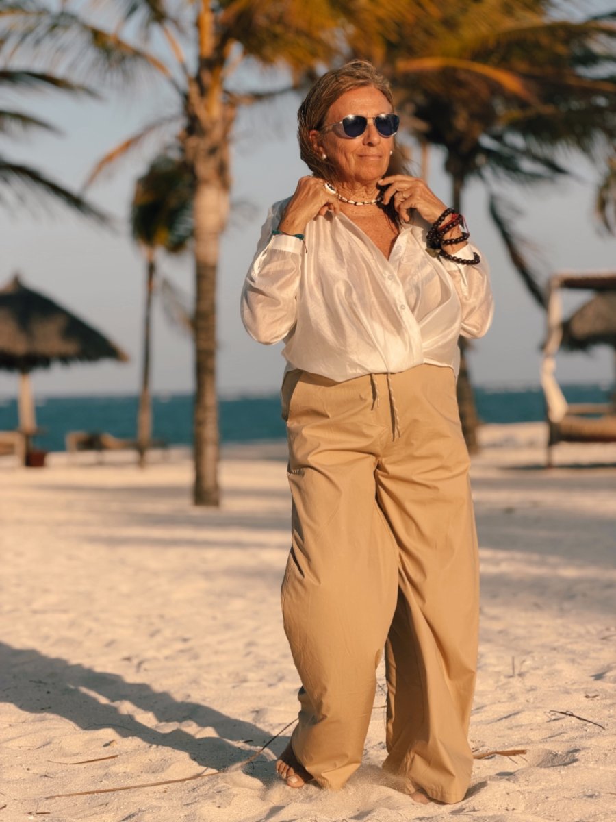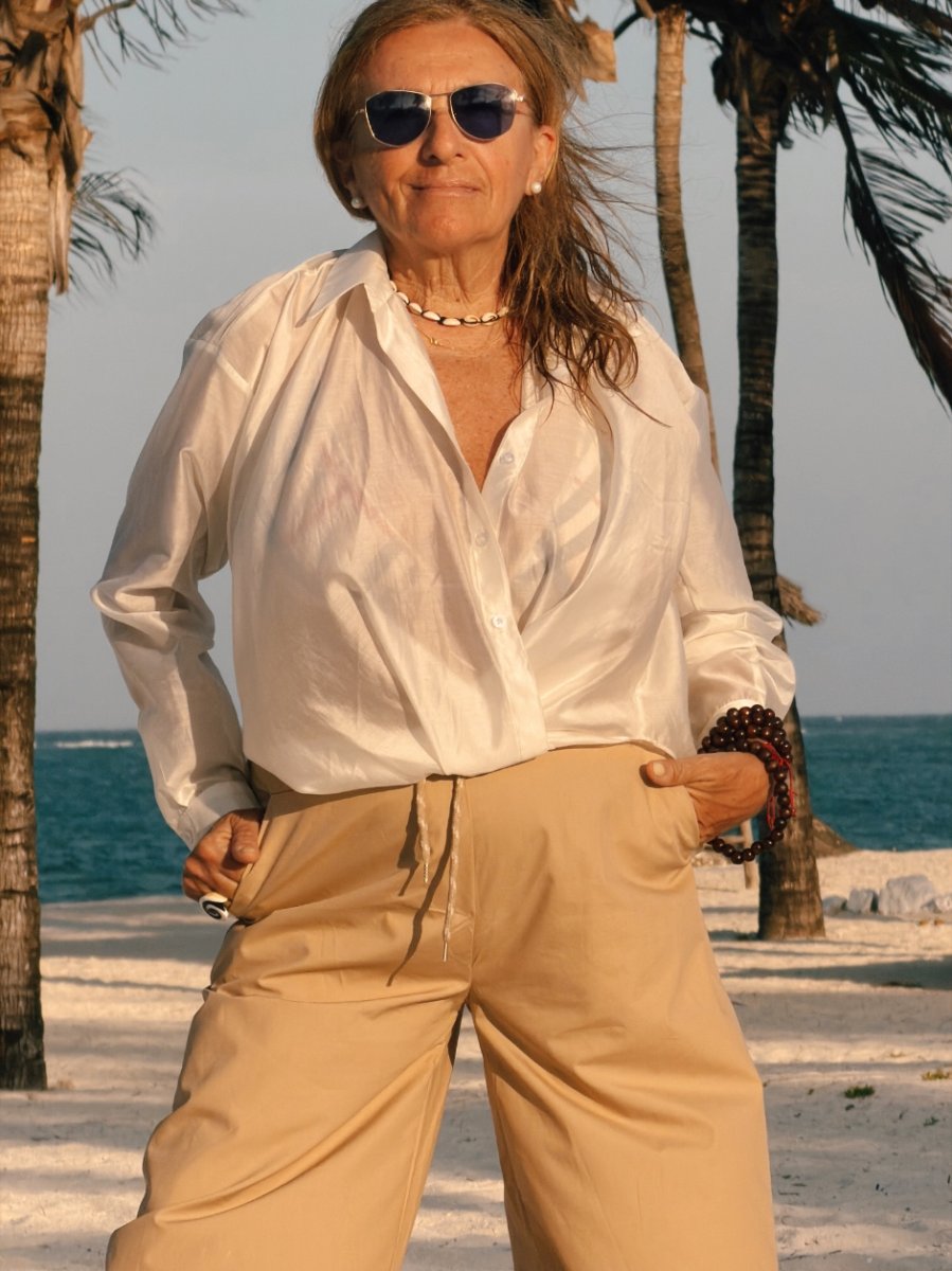 Camicia in morbido tencel leggermente trasparente, dalla linea fluida e femminile. Il tessuto leggero e luminoso dona movimento al capo, creando un effetto delicato e raffinato sulla silhouette.