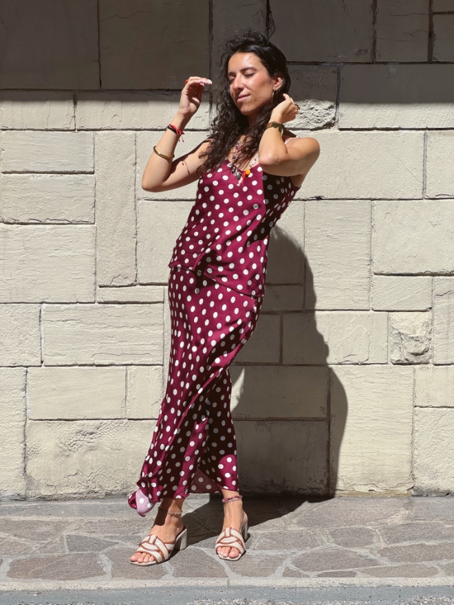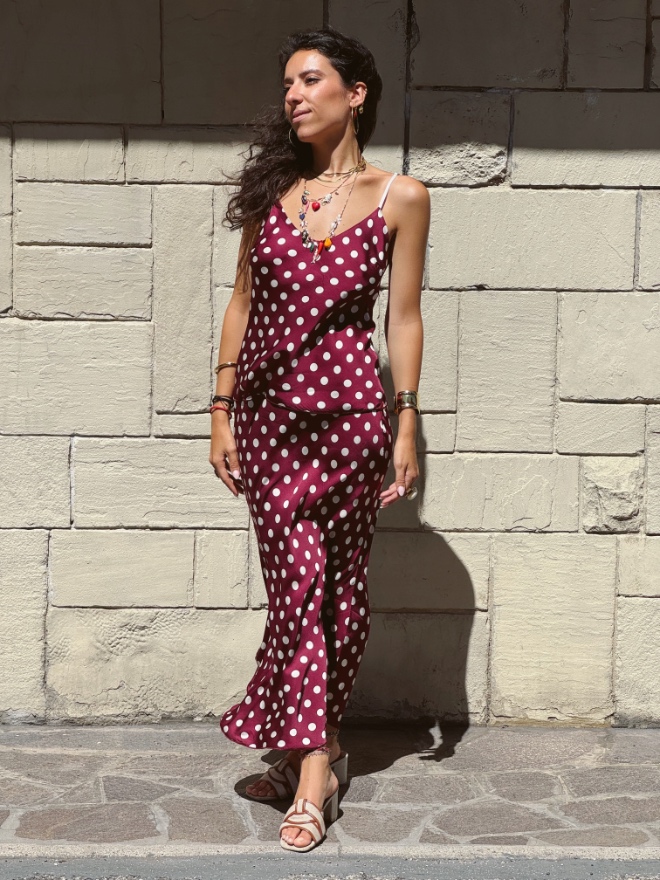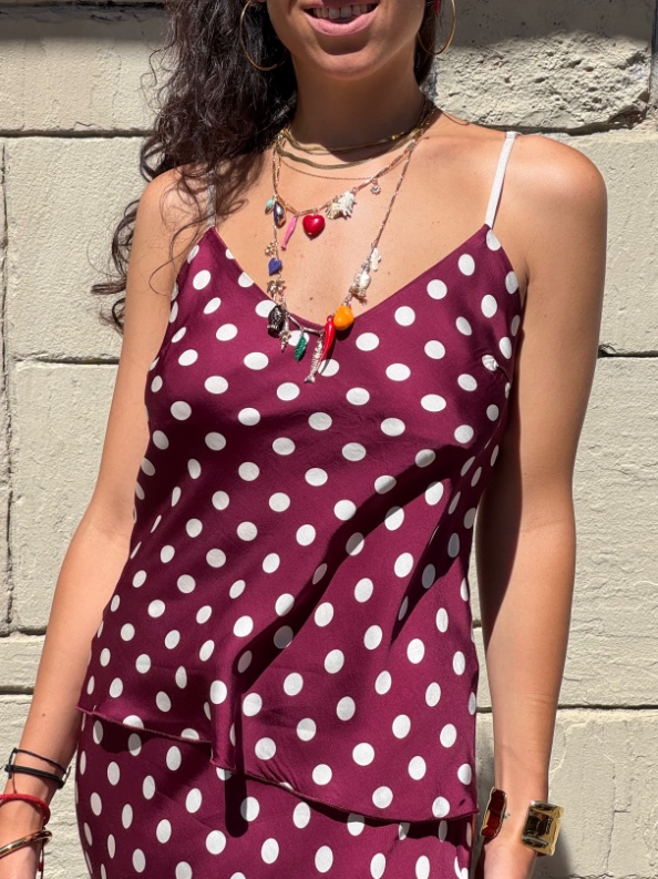 Canotta in raso di viscosa con spalline regolabili. Taglia unica con vestibilità fino alla 44.