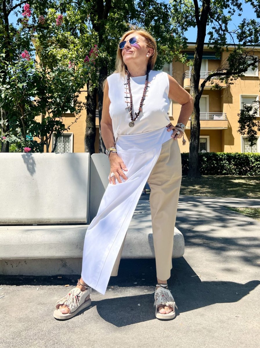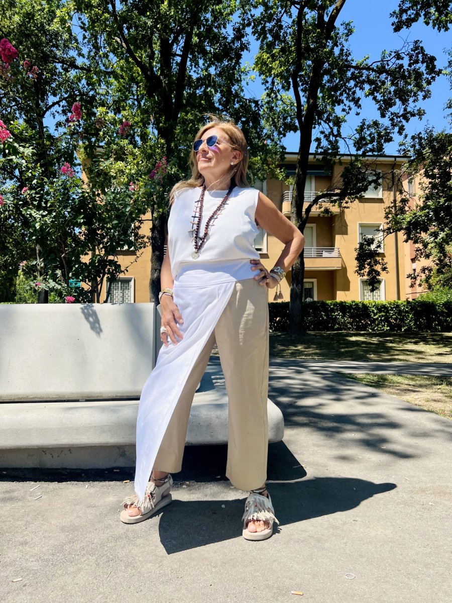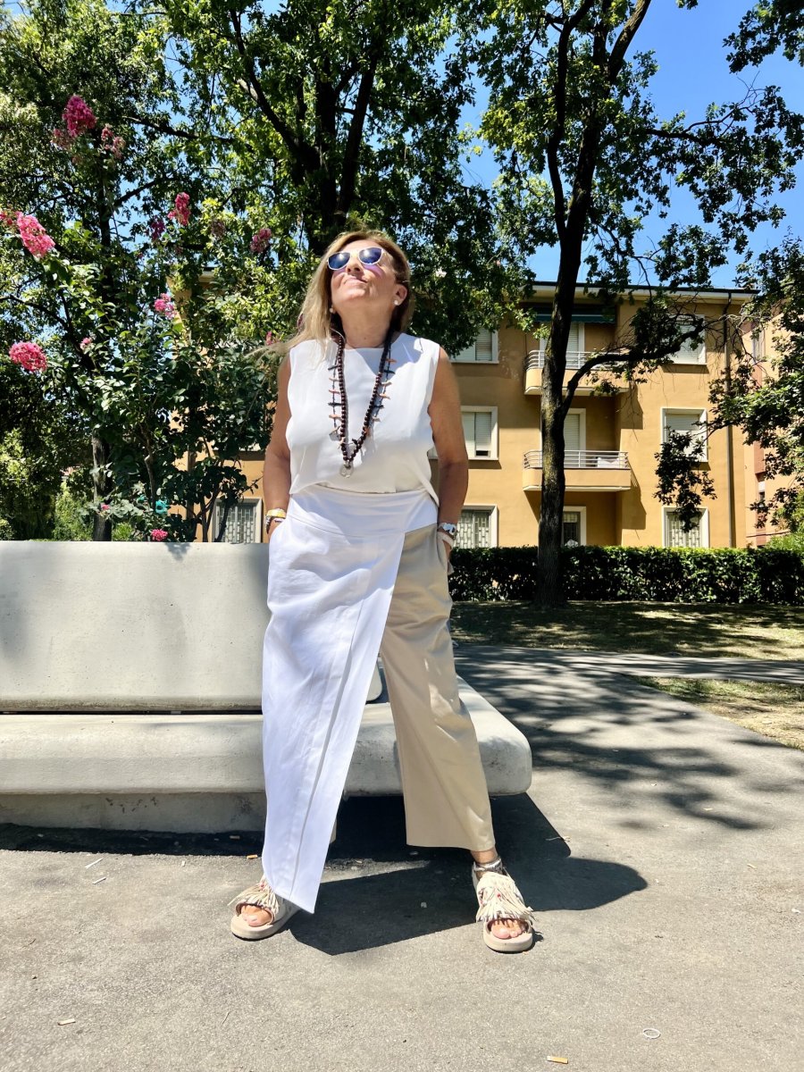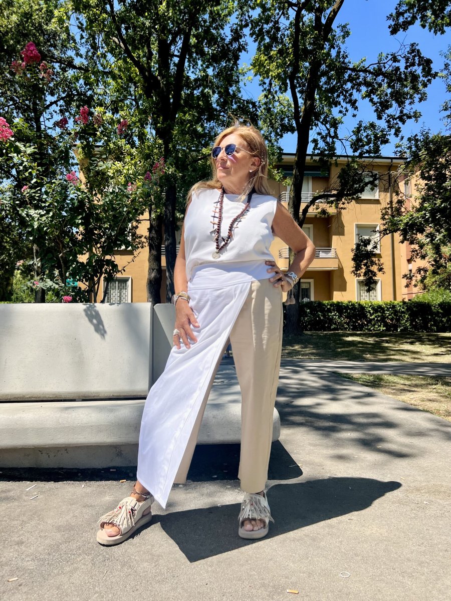 Perfetta da abbinare ai nostri Saint Tropez Pant o Pantaloni Kali in cady di viscosa.