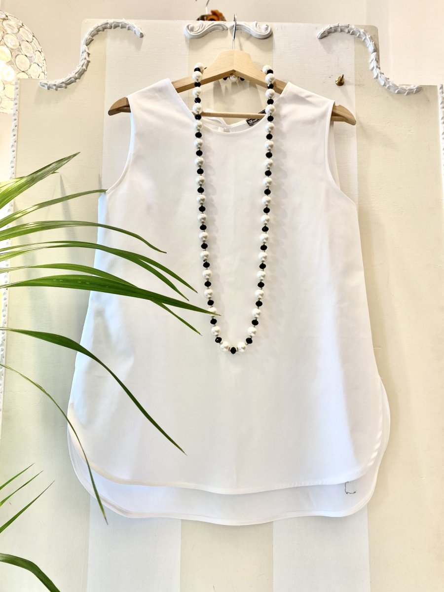 Blusa smanicata in cotone makò e allacciatura a fiocco sulla schiena. È un nostro modello originale e interamente lavorato a mano dal nostro laboratorio . Perfetta da abbinare ai nostri pantaloni Saint Tropez in cotone .