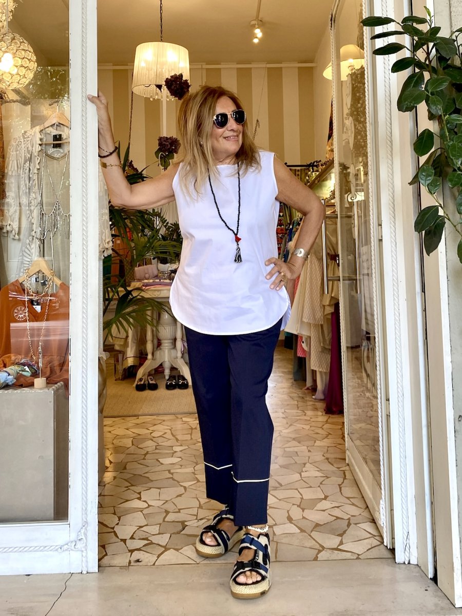 Perfetta da abbinare ai nostri pantaloni Saint Tropez in cotone .