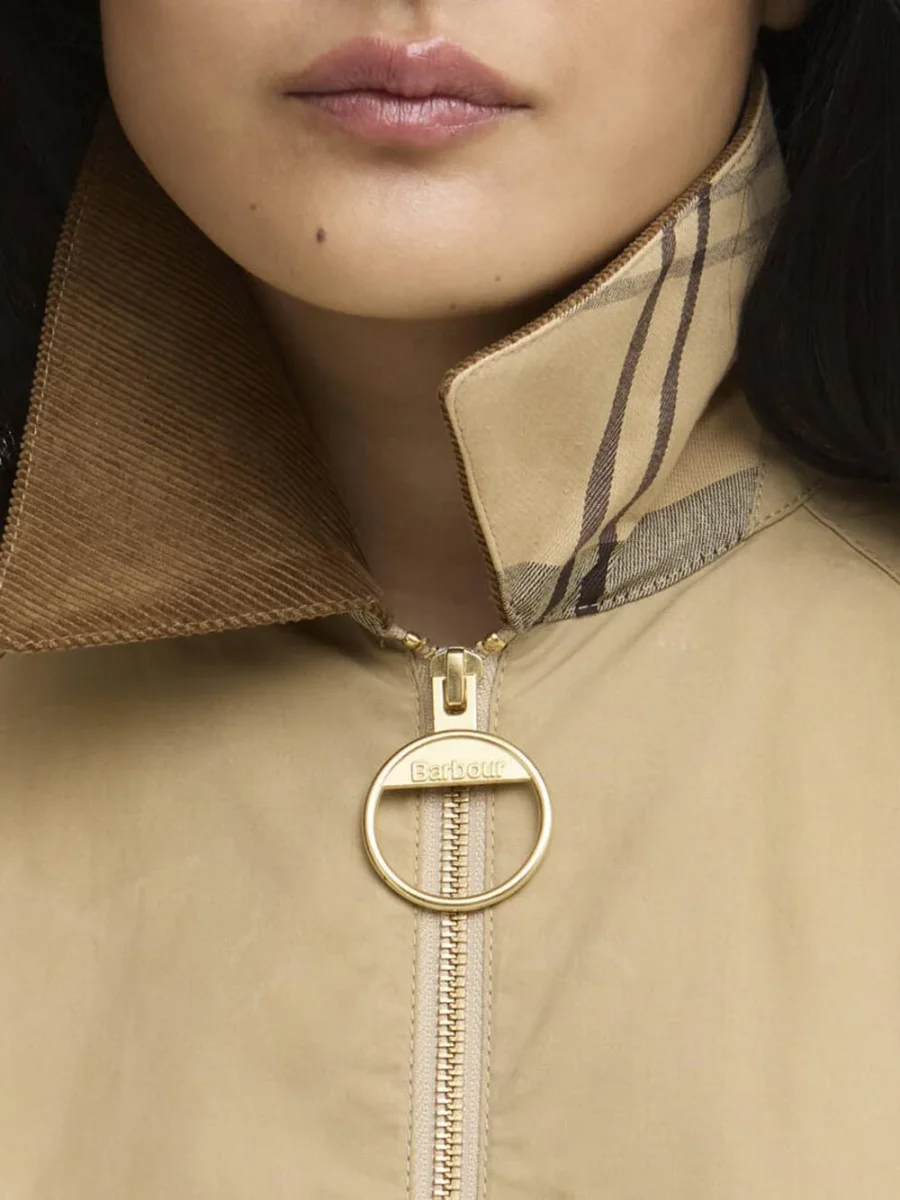 La Catlin Casual Jacket di Barbour è un giubbino da donna che coniuga stile e funzionalità. Realizzata in un raffinato colore beige, si distingue per il suo design moderno e femminile. La sua linea leggermente svasata e il dettaglio della cerniera a vista le conferiscono un’eleganza disinvolta, ideale per un look quotidiano.