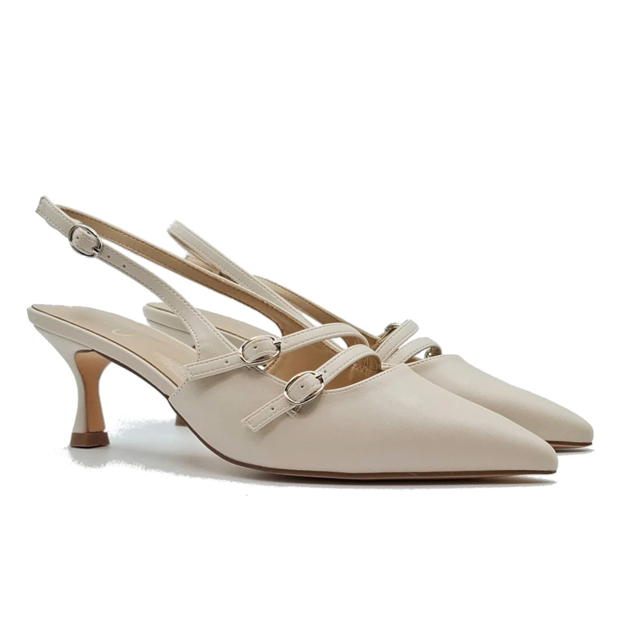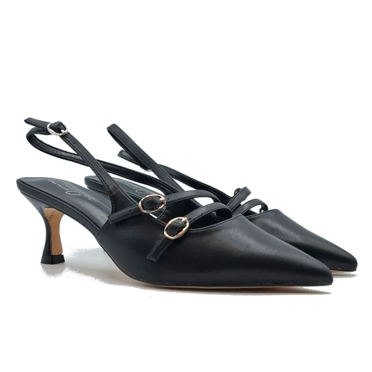 Chanel in eco pelle con doppia fibietta.Cuscinetto morbido.Tacco 4 cm.