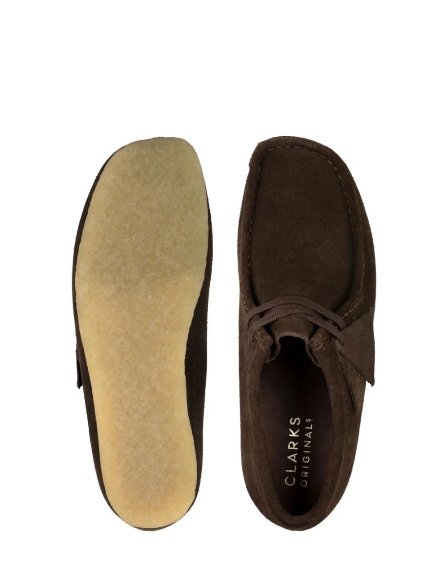 Semplice e pulito, con il suo design distintivo, la caratteristica suola in para e la tomaia in pelle scamosciata marrone scuro di tendenza, il Wallabee si ripresenta per la nuova stagione ed è più bello che mai.