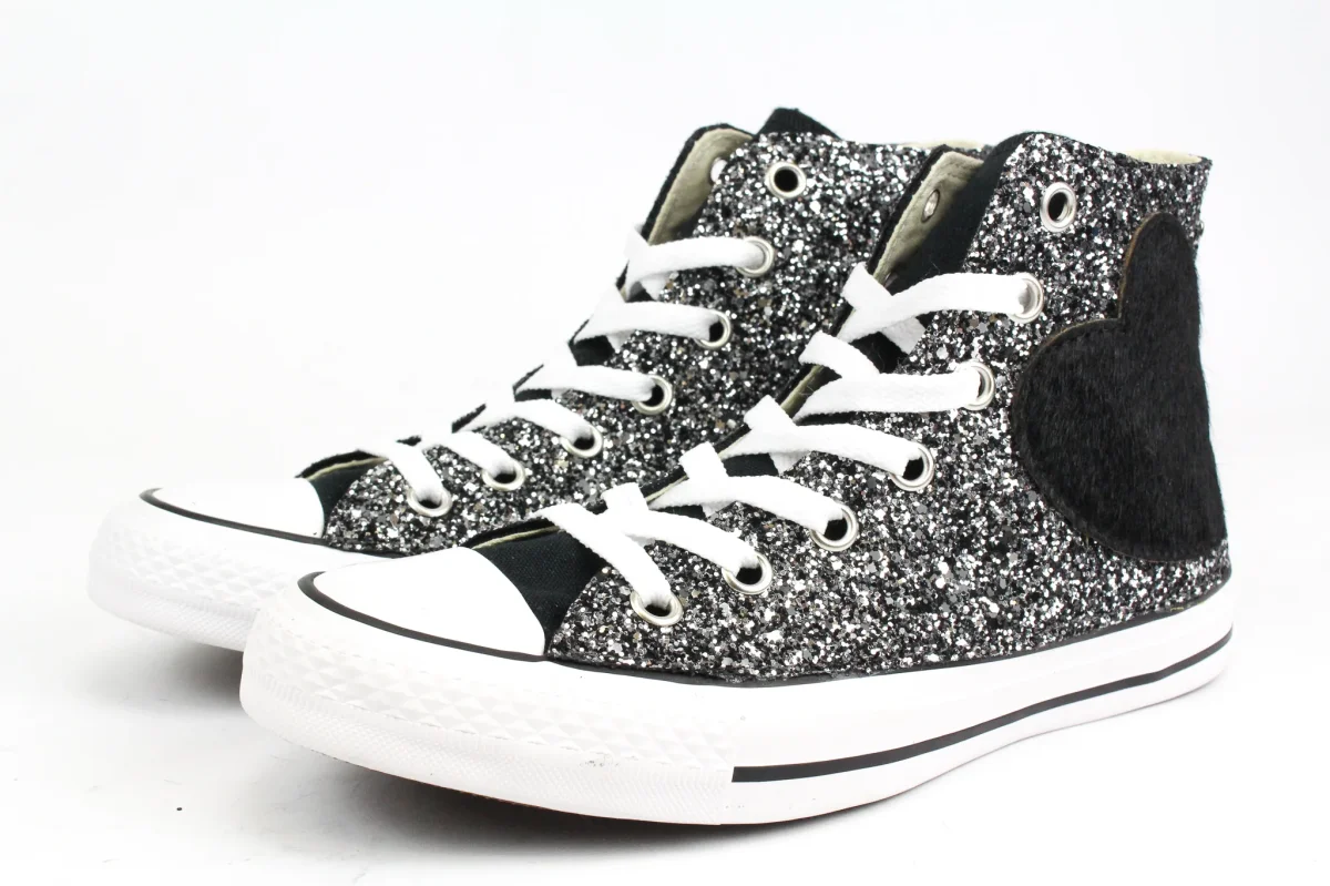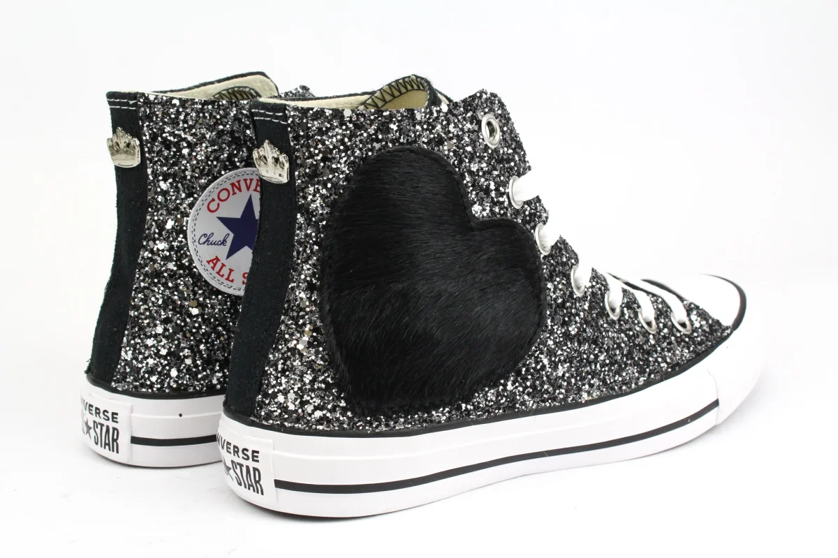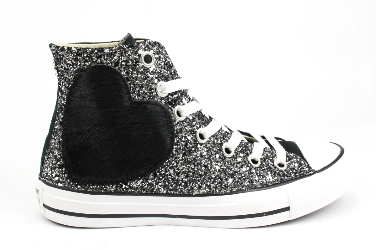 Converse All Star Black Cuore Cavallino Nero & Glitter