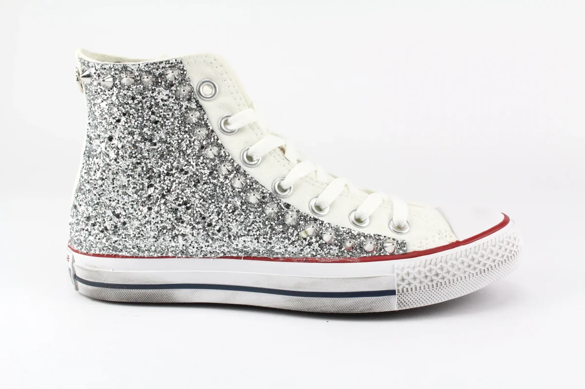 Converse All Star White Silver Glitter & Borchie