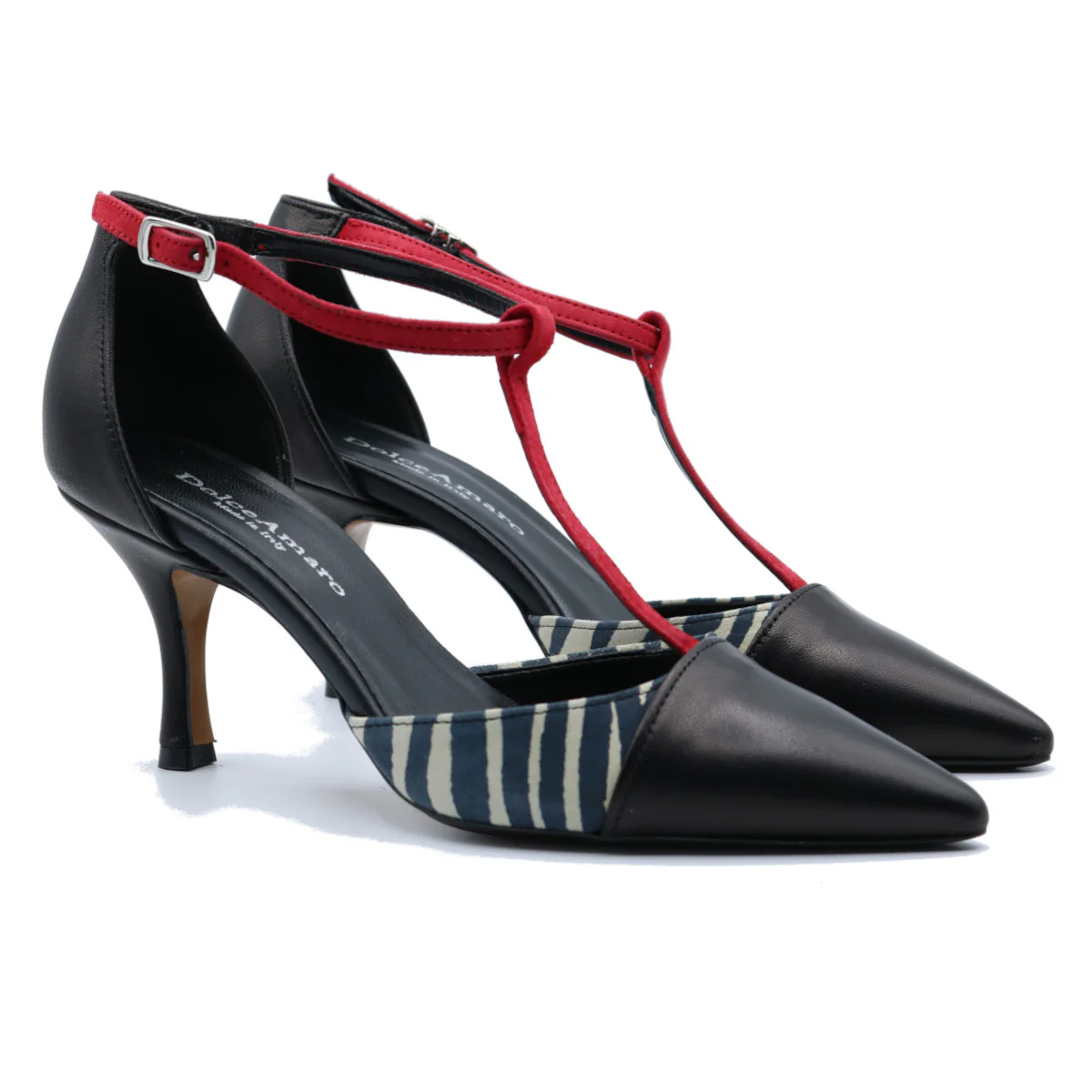 Décolletè tanghero in pelle e camoscio.