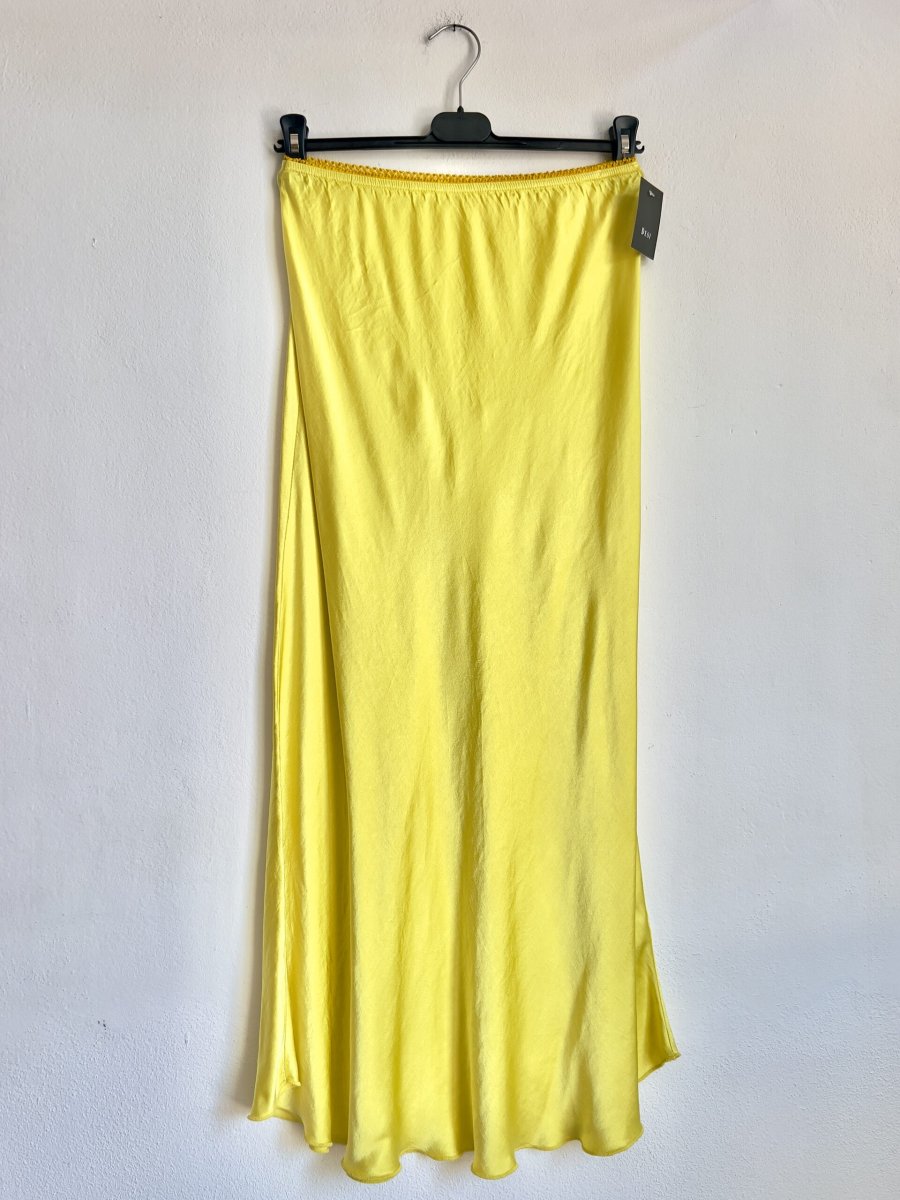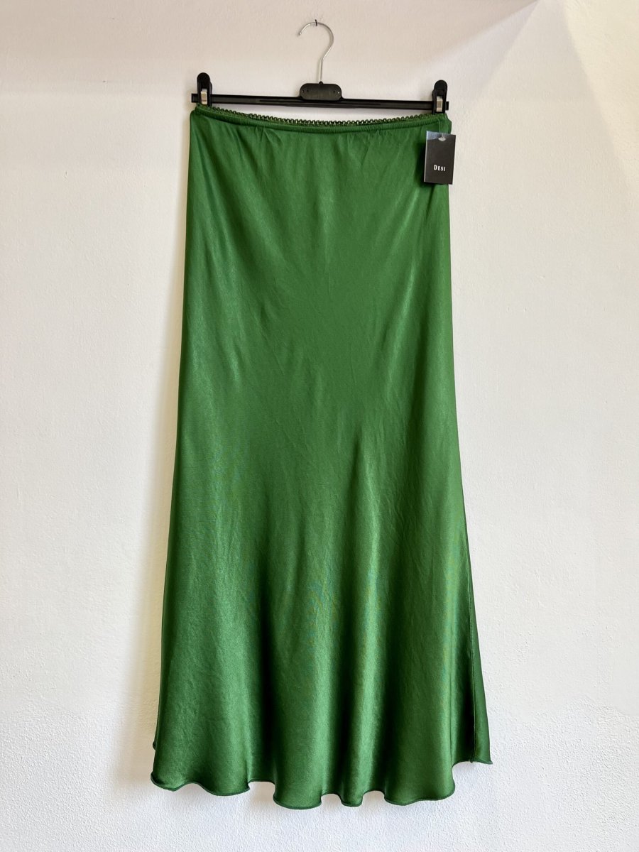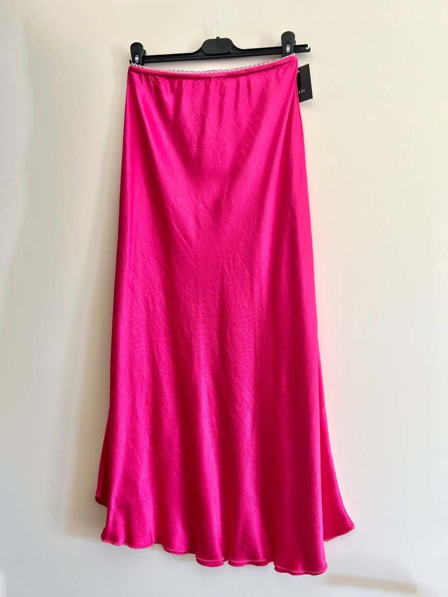 Gonna a sirena in raso di viscosa con elastico in vita . È taglia unica e veste fino ad una 48/50.