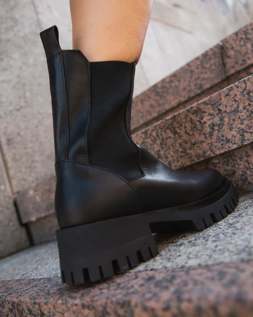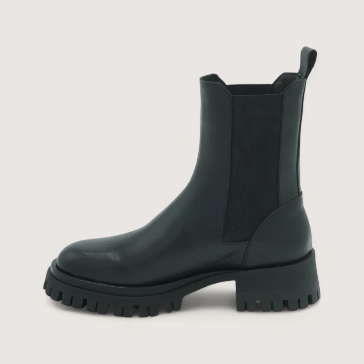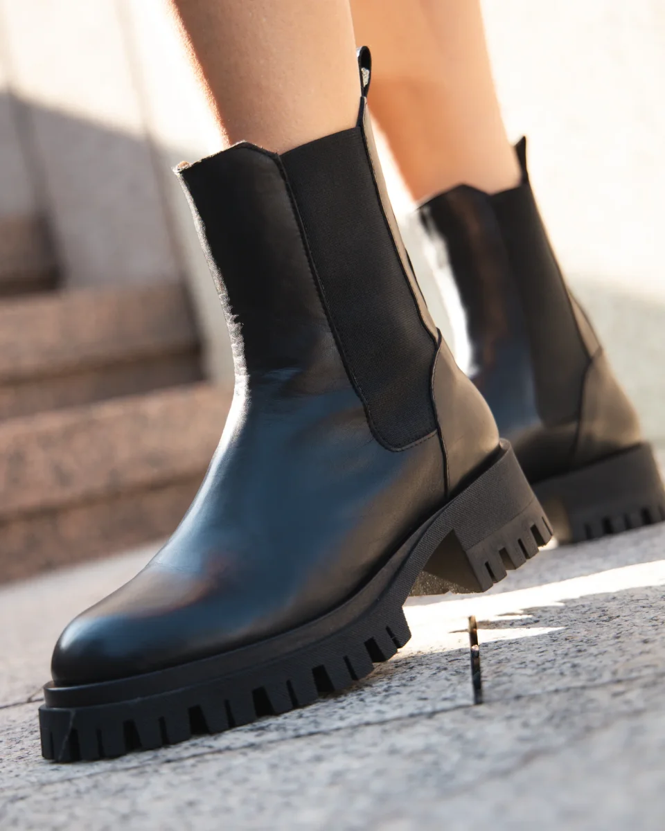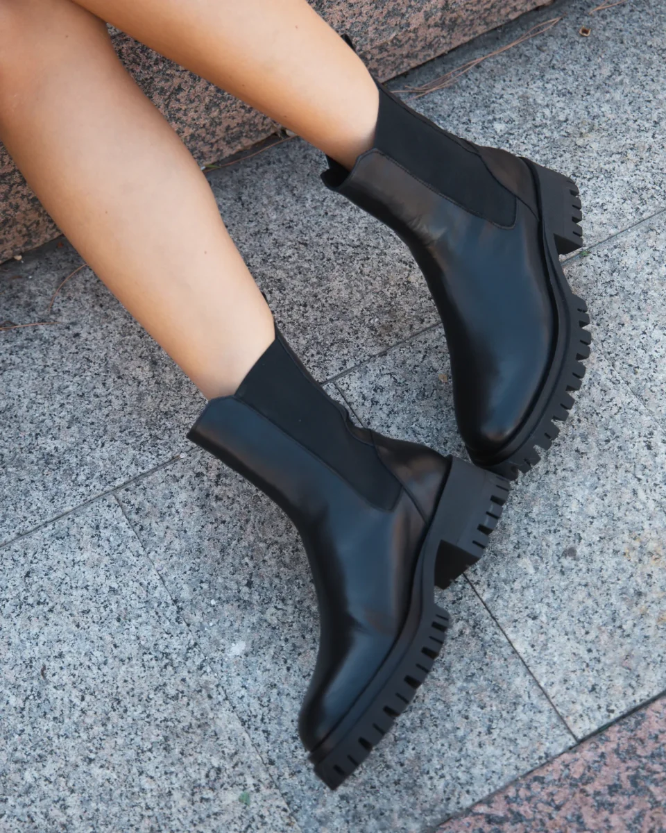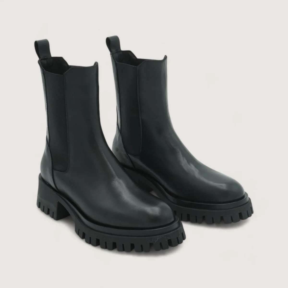 Il nostro anfibio Hera in pelle nera con fondo nero è realizzato artigianalmente in Italia con vera pelle. Creiamo questo modello su ordinazione, dedicando massima cura ai dettagli. Grazie all’alta qualità dei materiali, il suo design resta invariato nel tempo, offrendoti uno stile duraturo.