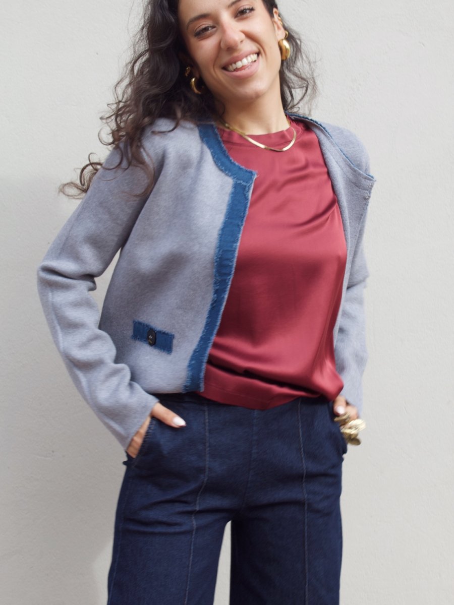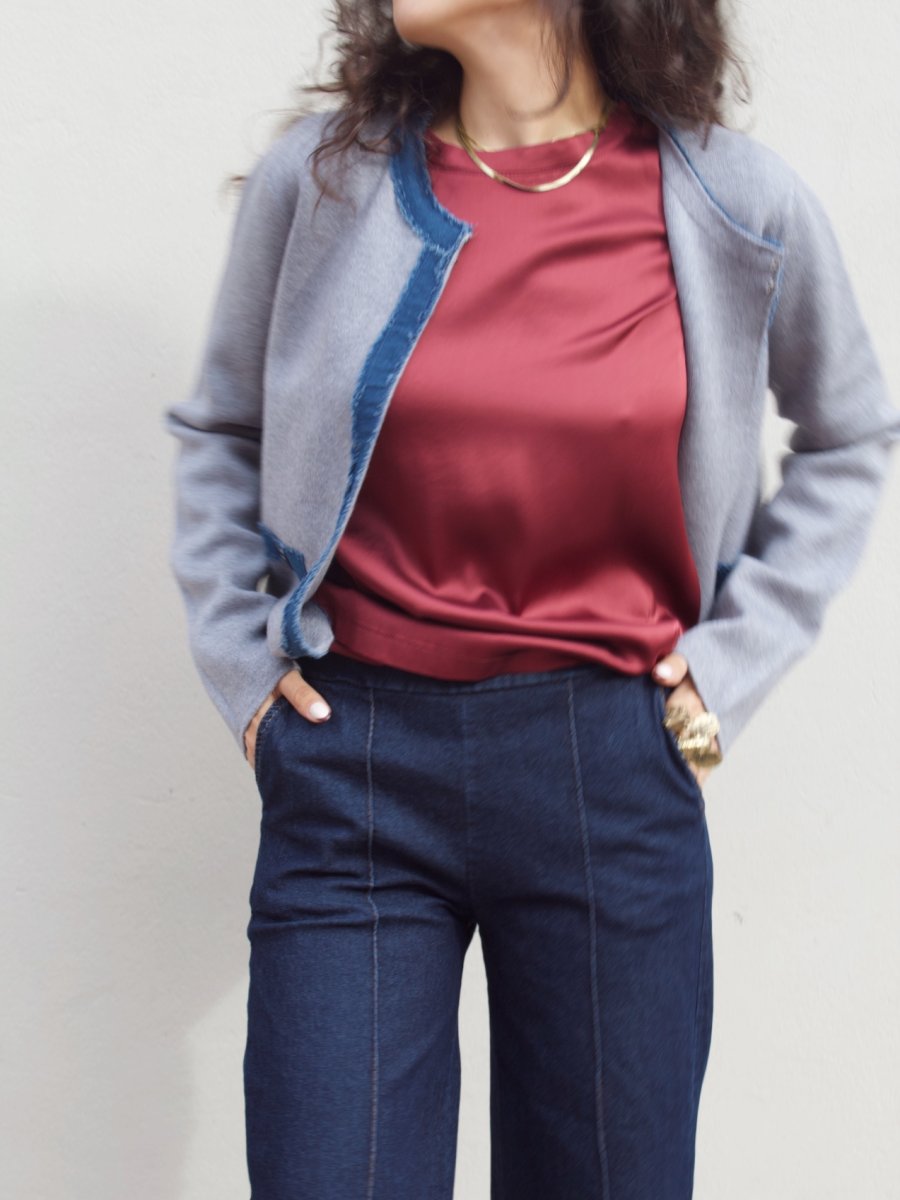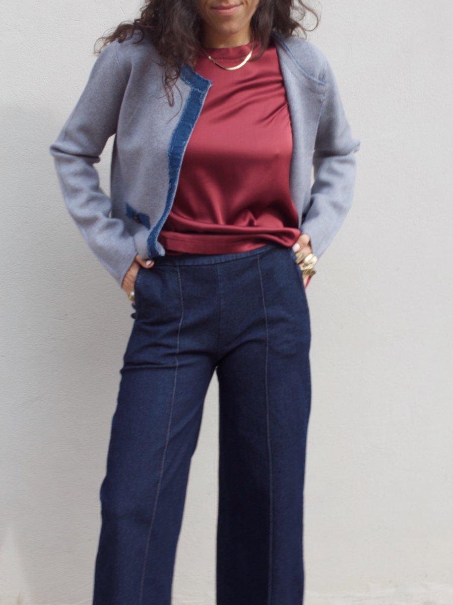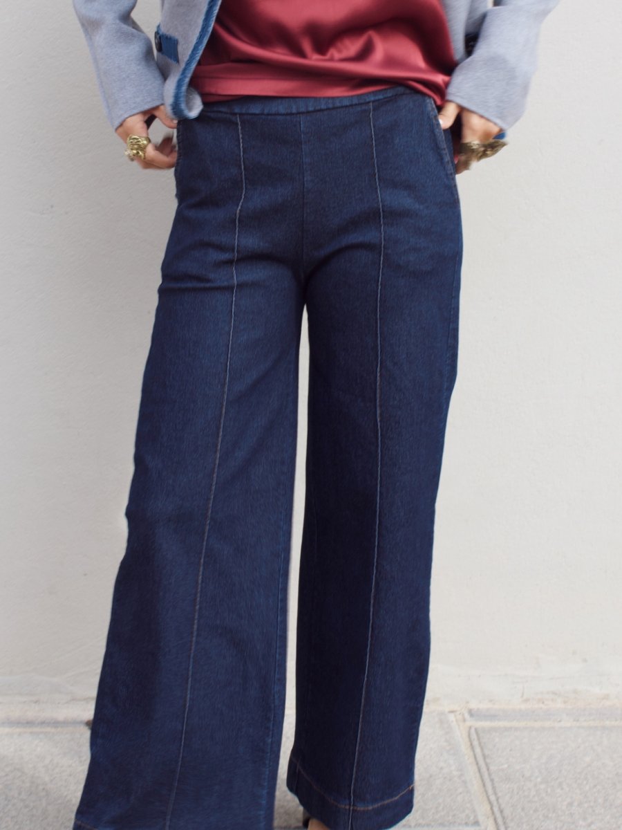 Jeans in denim ultra elasticizzato a gamba morbida con profilo frontale. Ha le tasche e una vestibilità regolare.