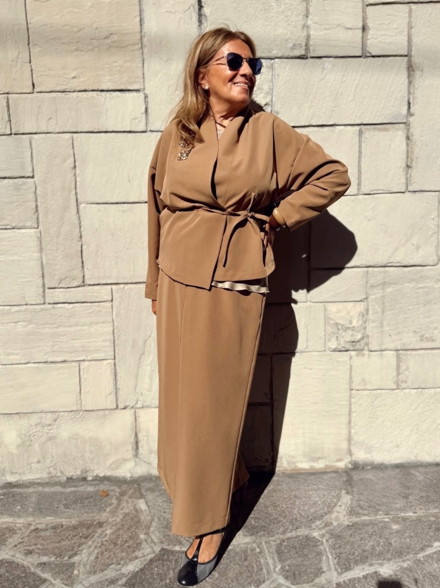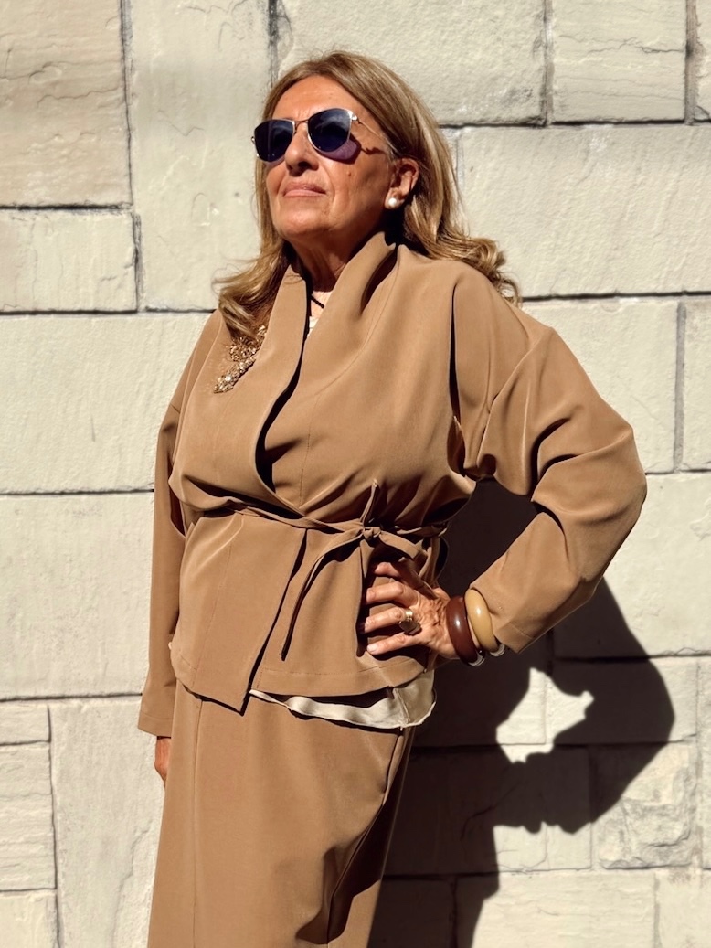 Kimono corto in cady di viscosa con scollo sciallato e chiusura tramite laccetti. È un nostro modello originale e interamente lavorato a mano dal nostro laboratorio . È taglia unica e può essere realizzato fino a 120 cm di giro seno.