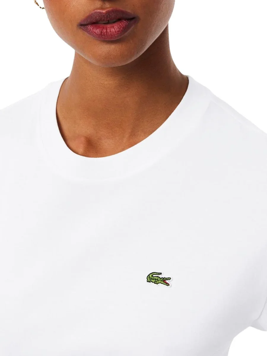 La T-shirt da donna Lacoste TF7215 in colore bianco è un capo versatile ed elegante, perfetto per ogni occasione. Realizzata in morbido cotone Pima, offre un comfort eccezionale e una vestibilità rilassata che si adatta perfettamente ai movimenti. Con un design sobrio e un colletto a coste, è un must-have nel guardaroba di ogni donna.