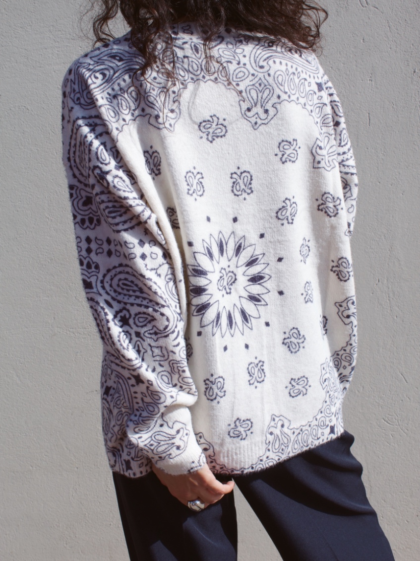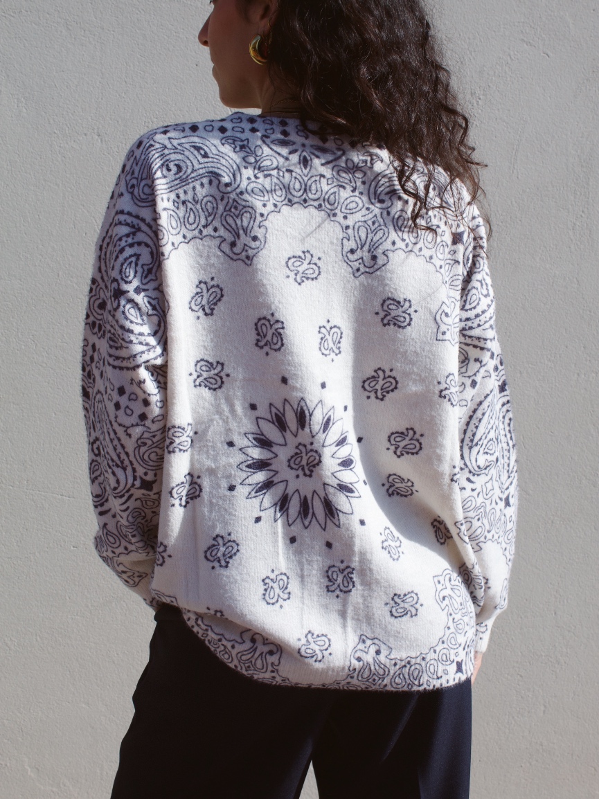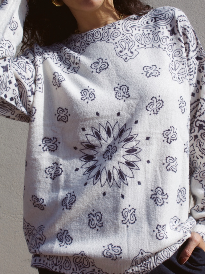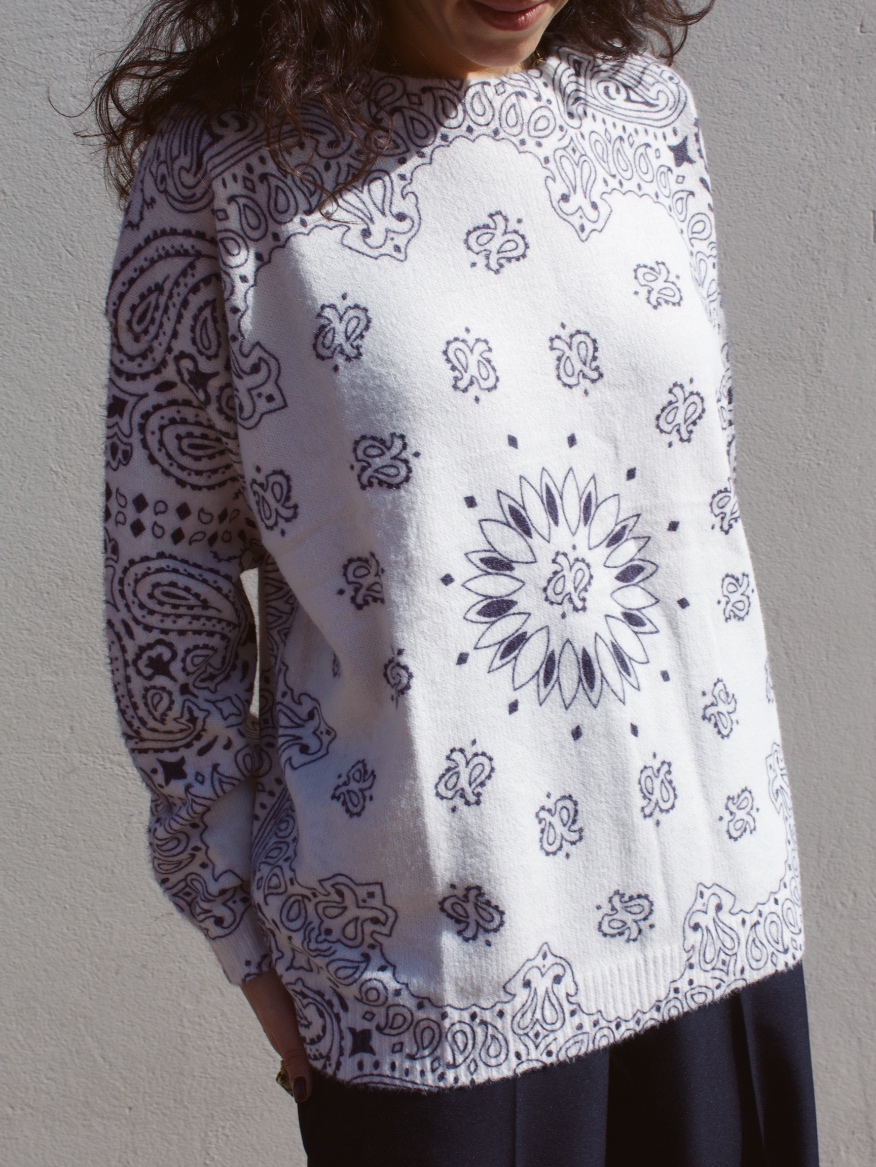 Maglia oversize a fantasia. È taglia unica e veste fino ad una 50.