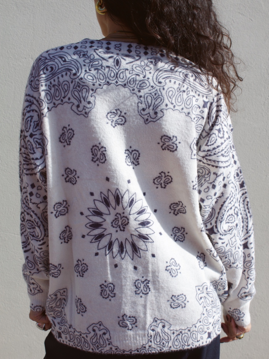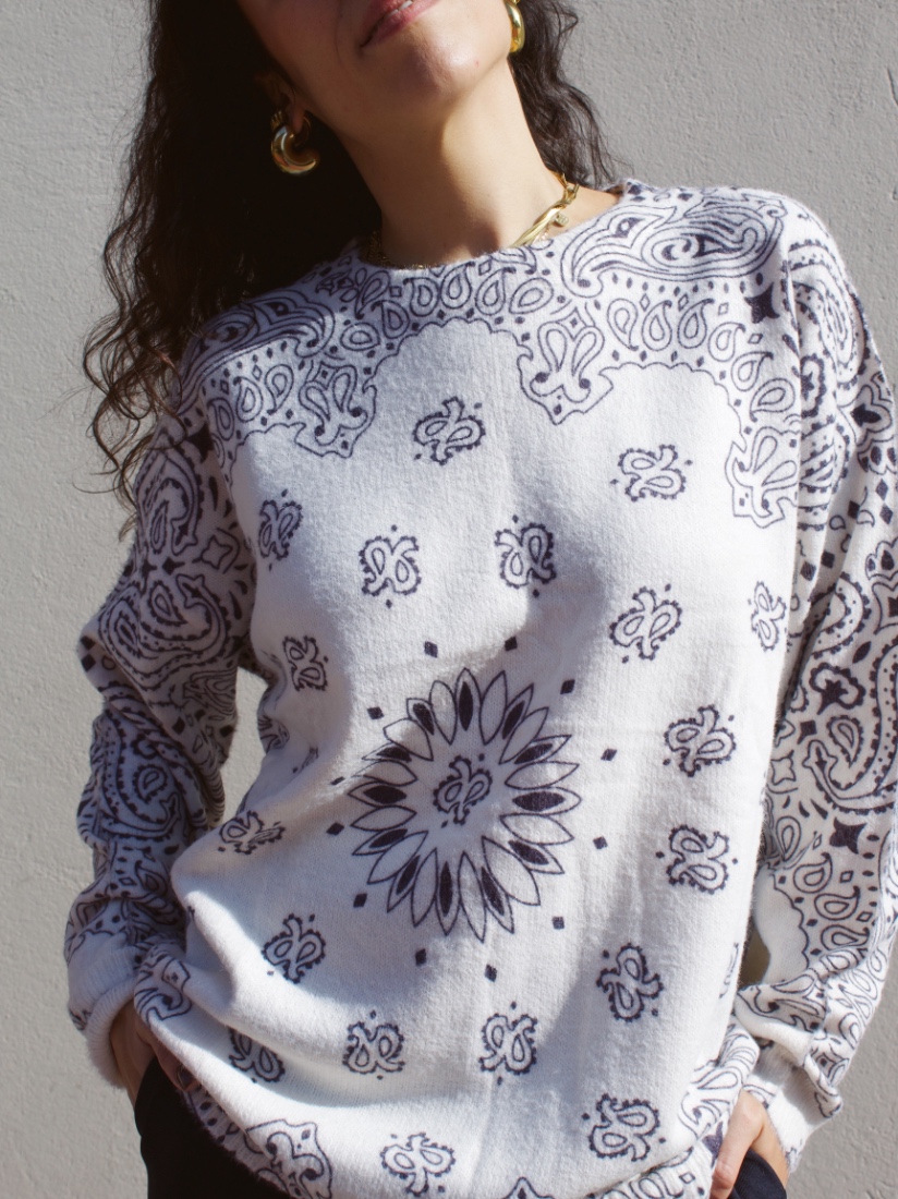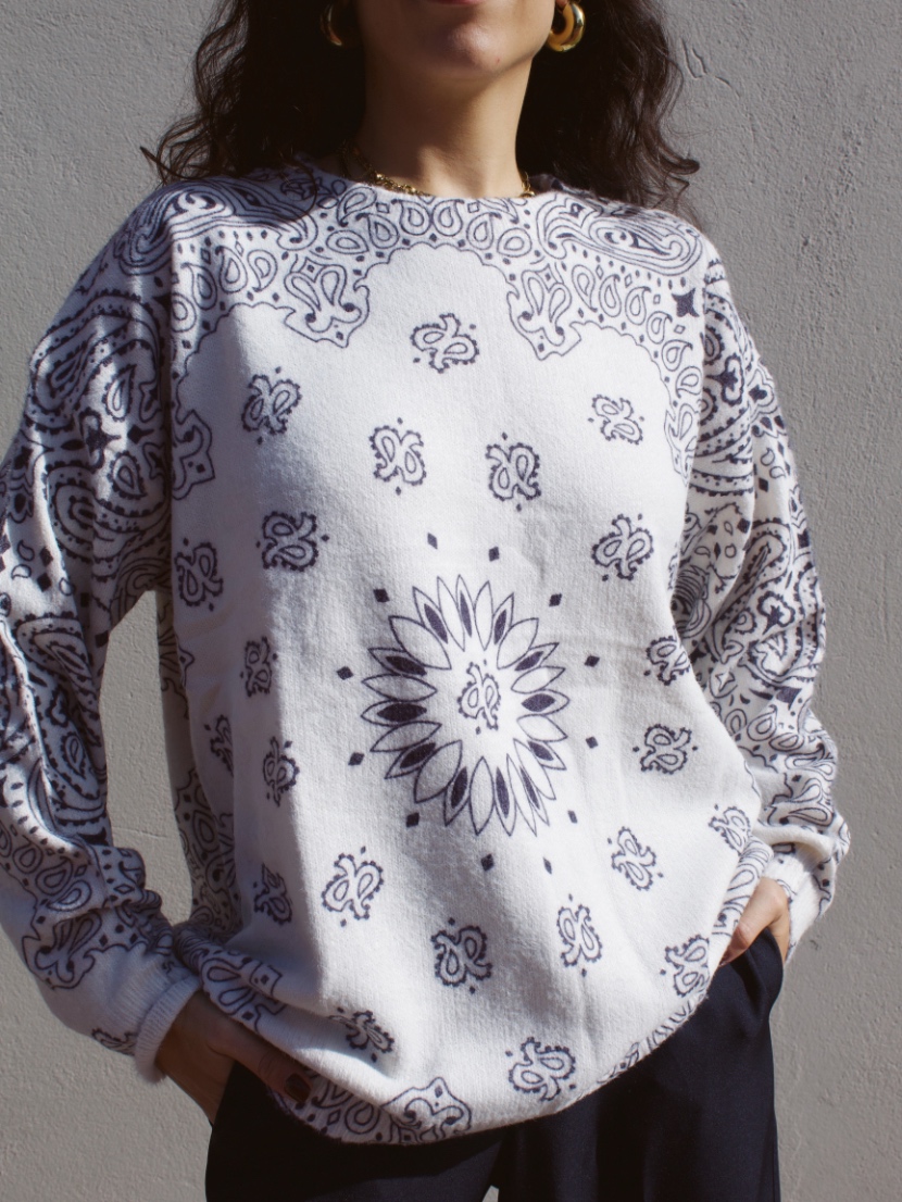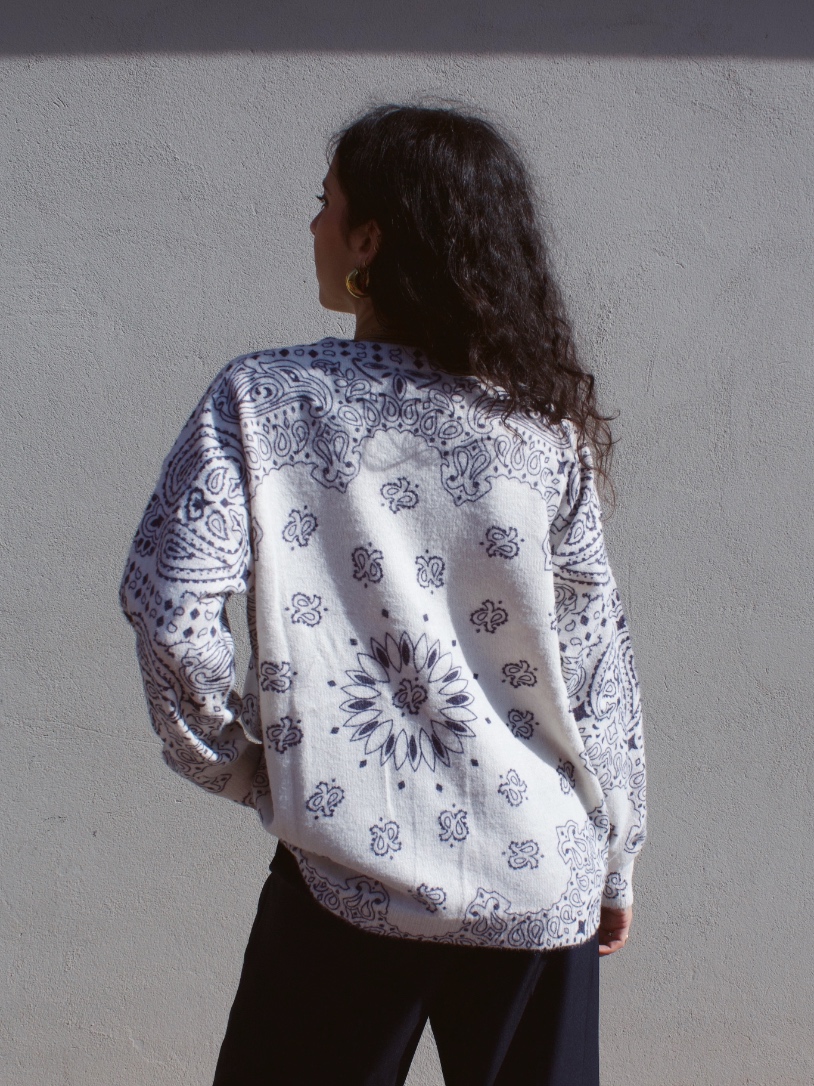 Maglia oversize a fantasia. È taglia unica e veste fino ad una 50.