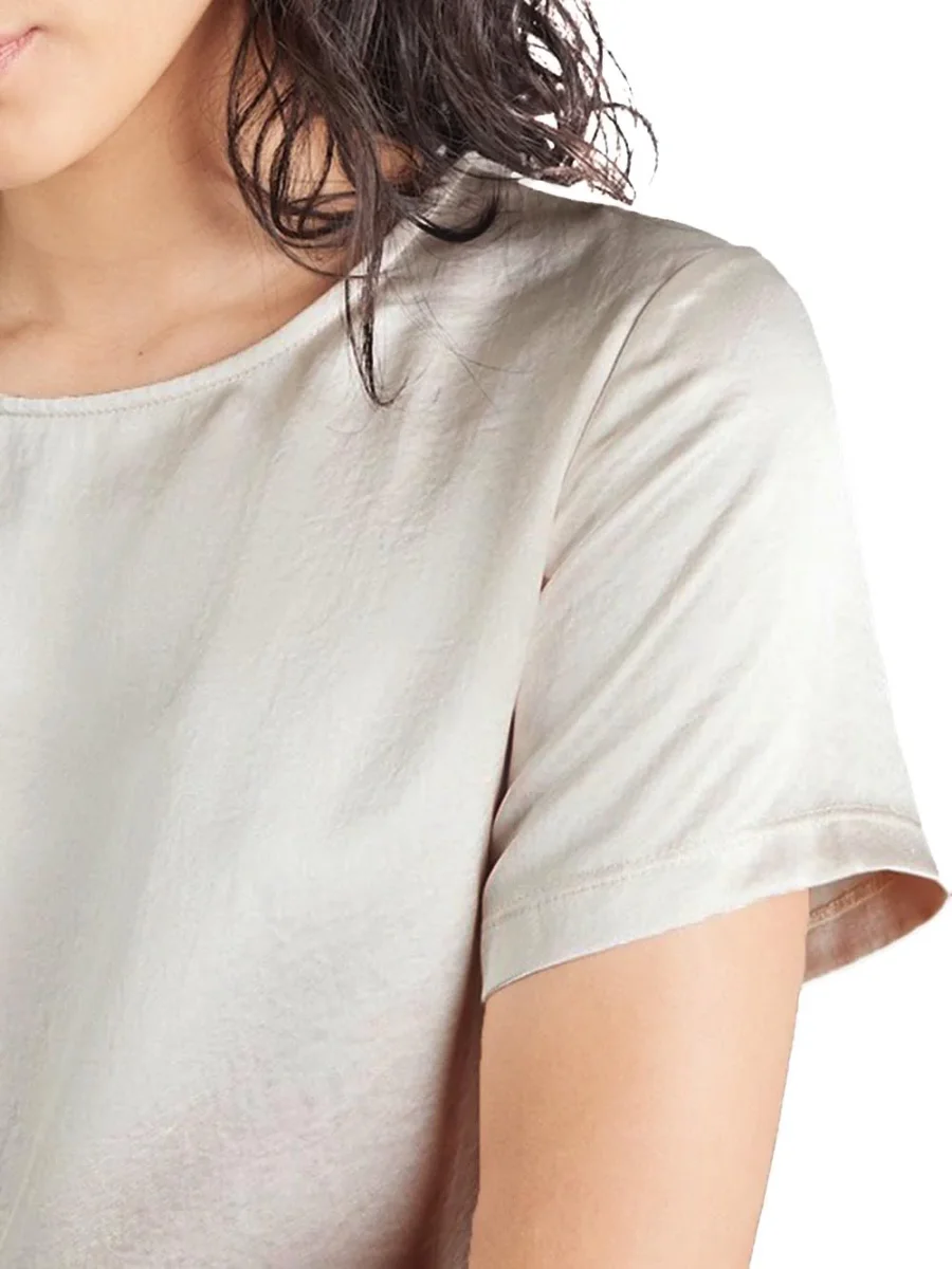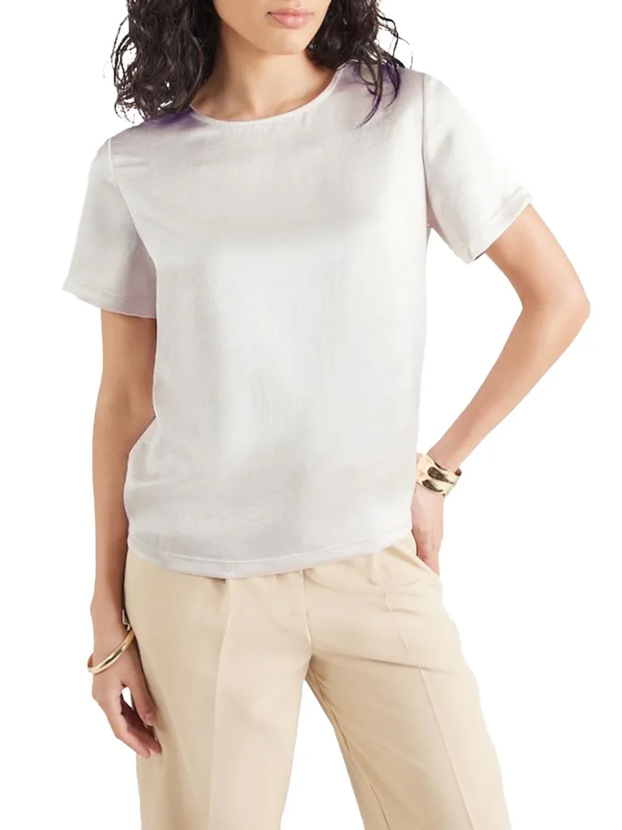 – Dettaglio di collo tondo e maniche corte per un tocco di classe senza tempo
