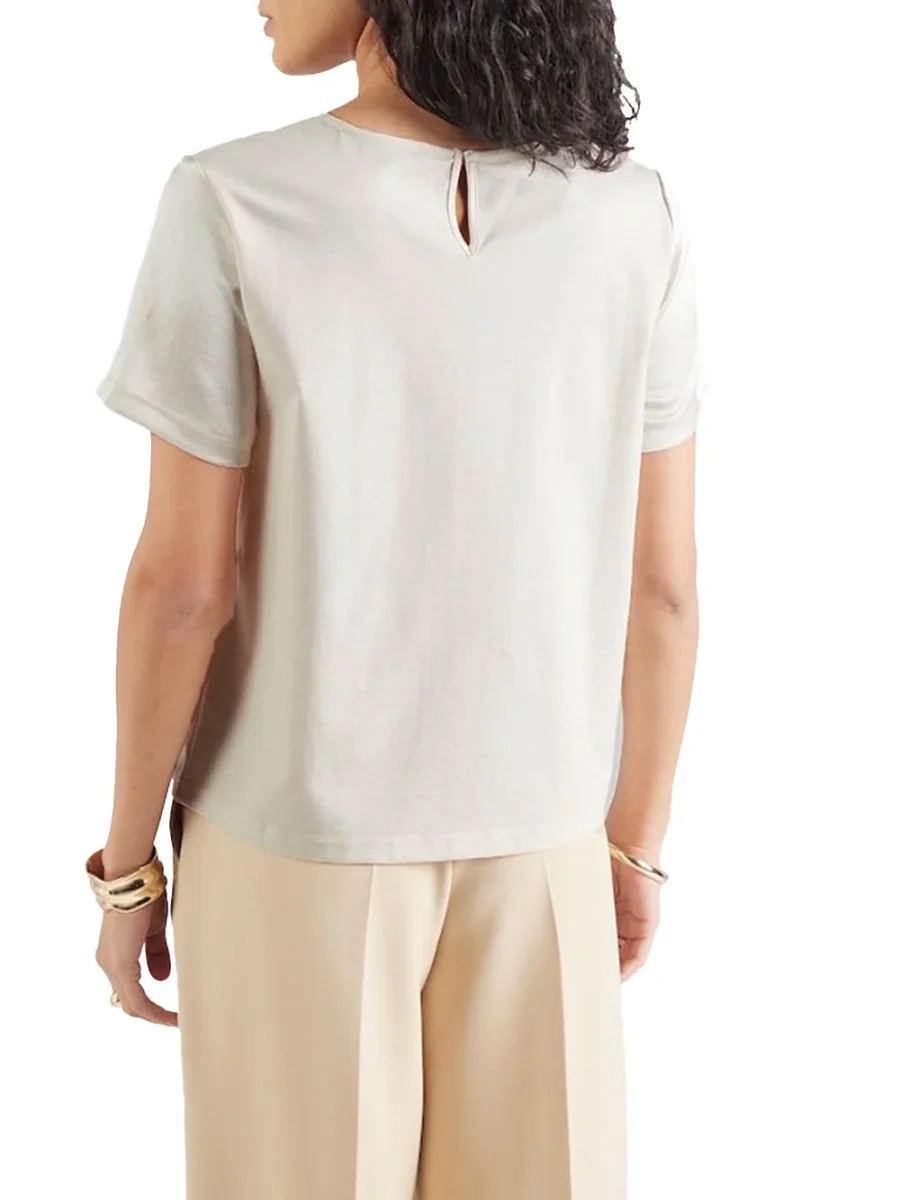 – Realizzata in t-shirt di raso tecnico con retro in jersey di lyocell, lavorato a punto Milano