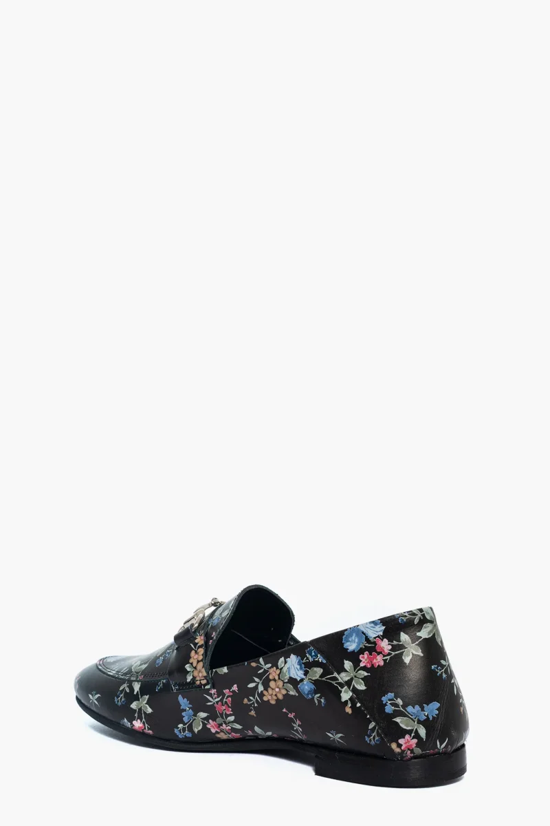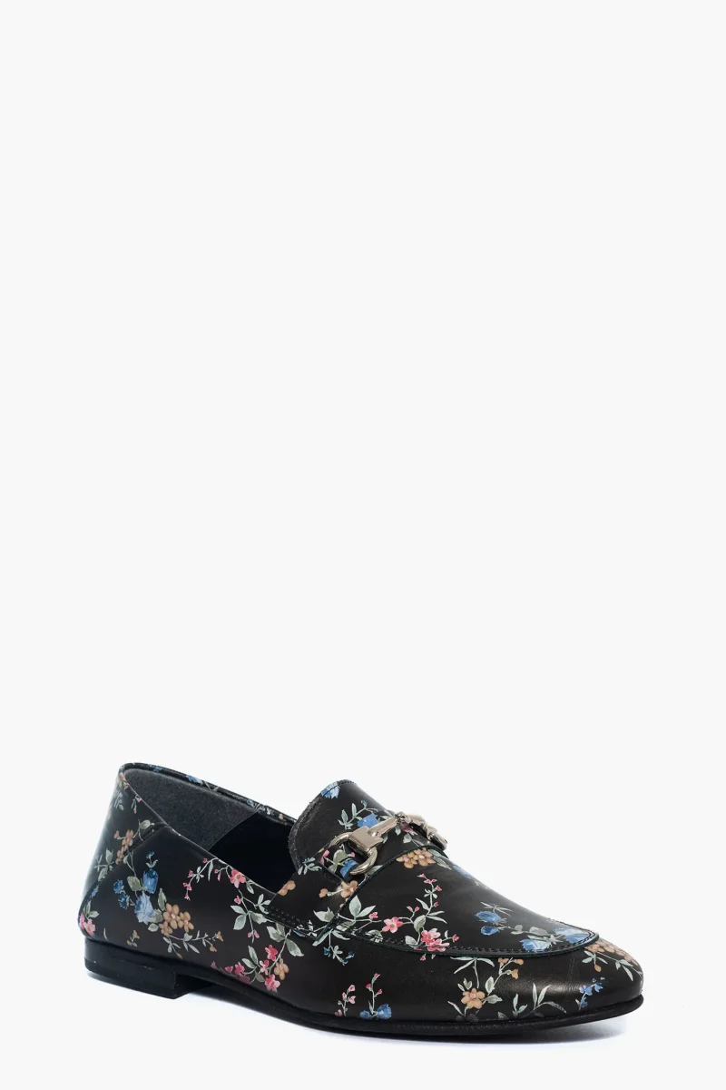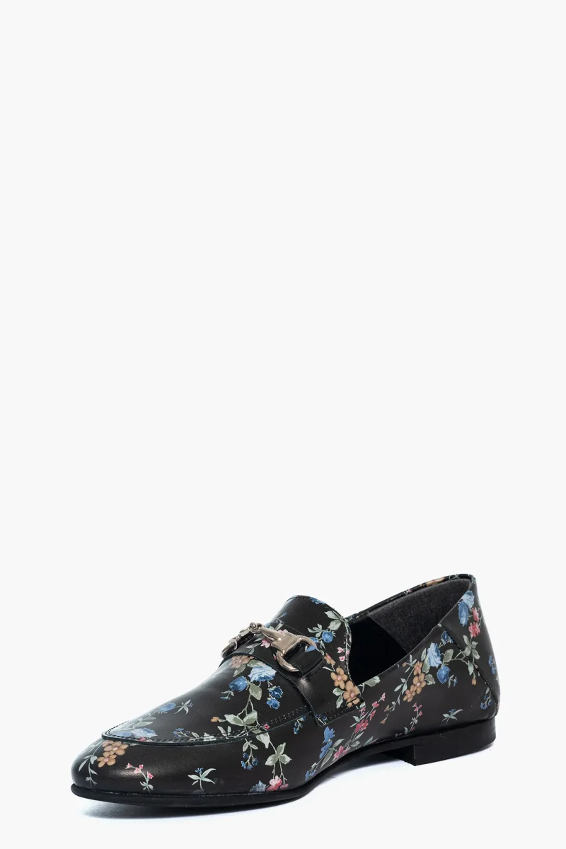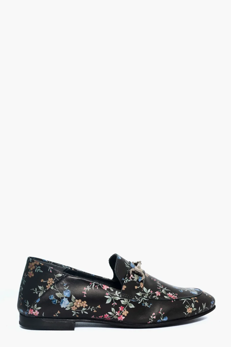 Mocassini Uma pelle nera fantasia floreale con morsetto